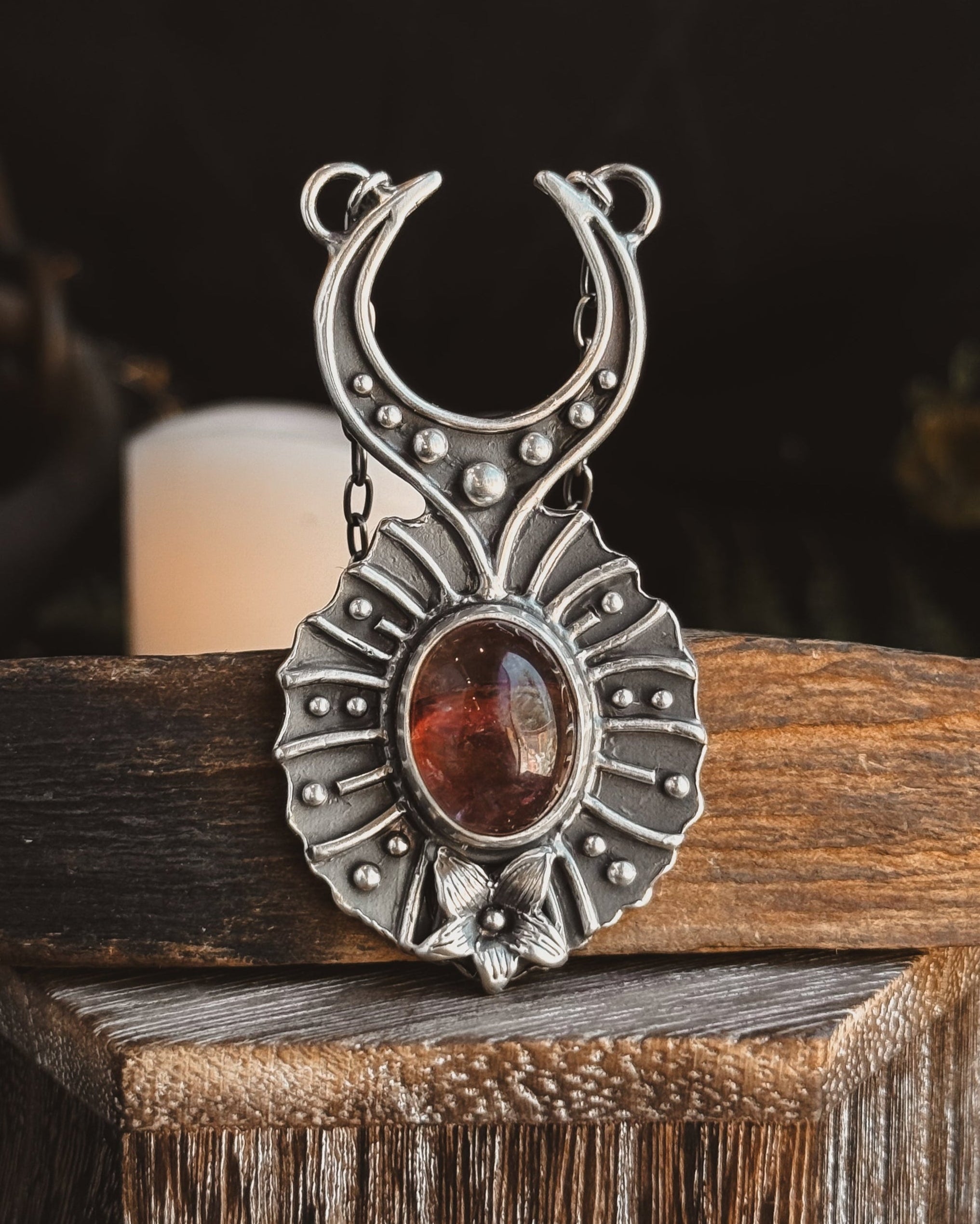 Moon Flower Necklace- Hematoid Quartz