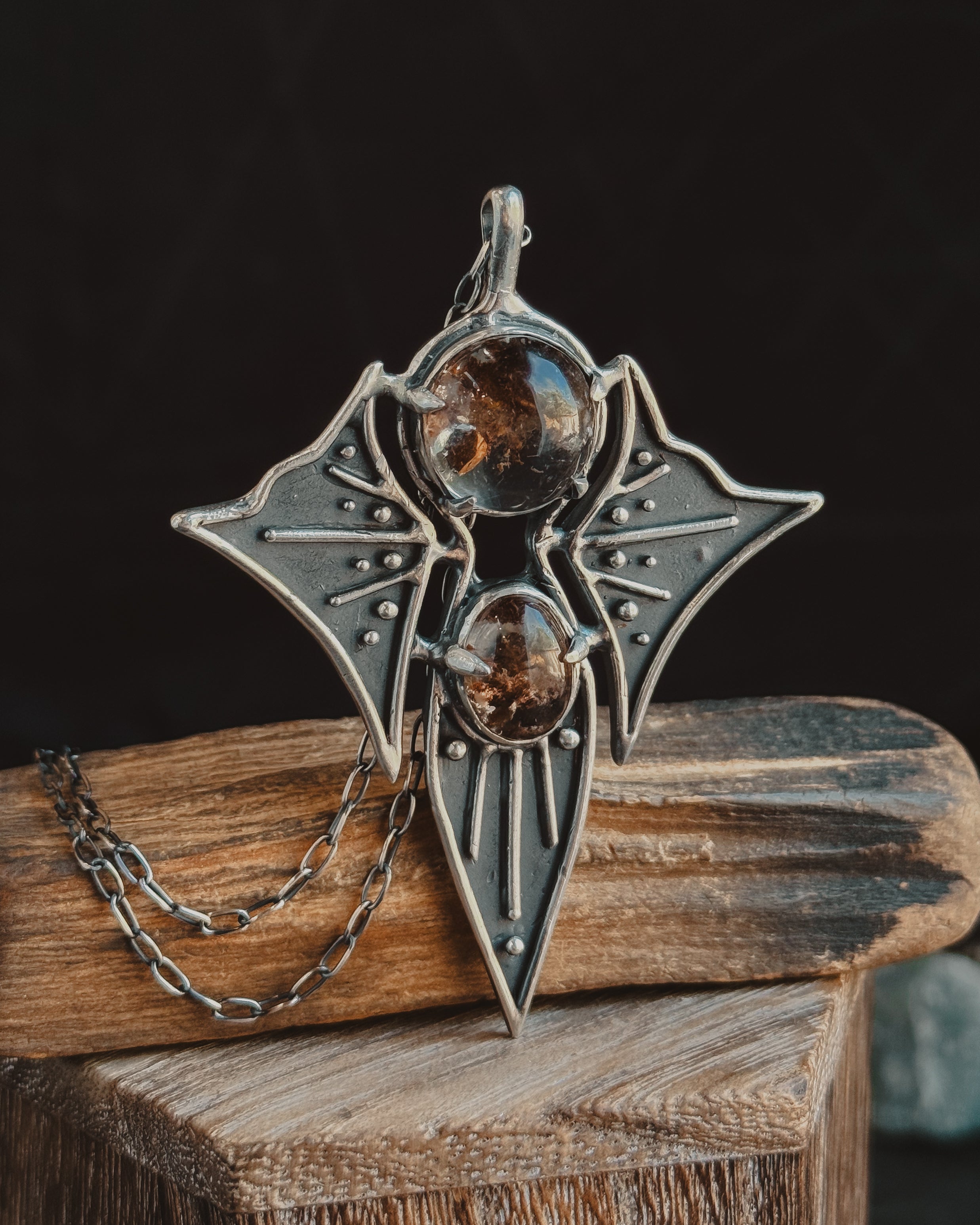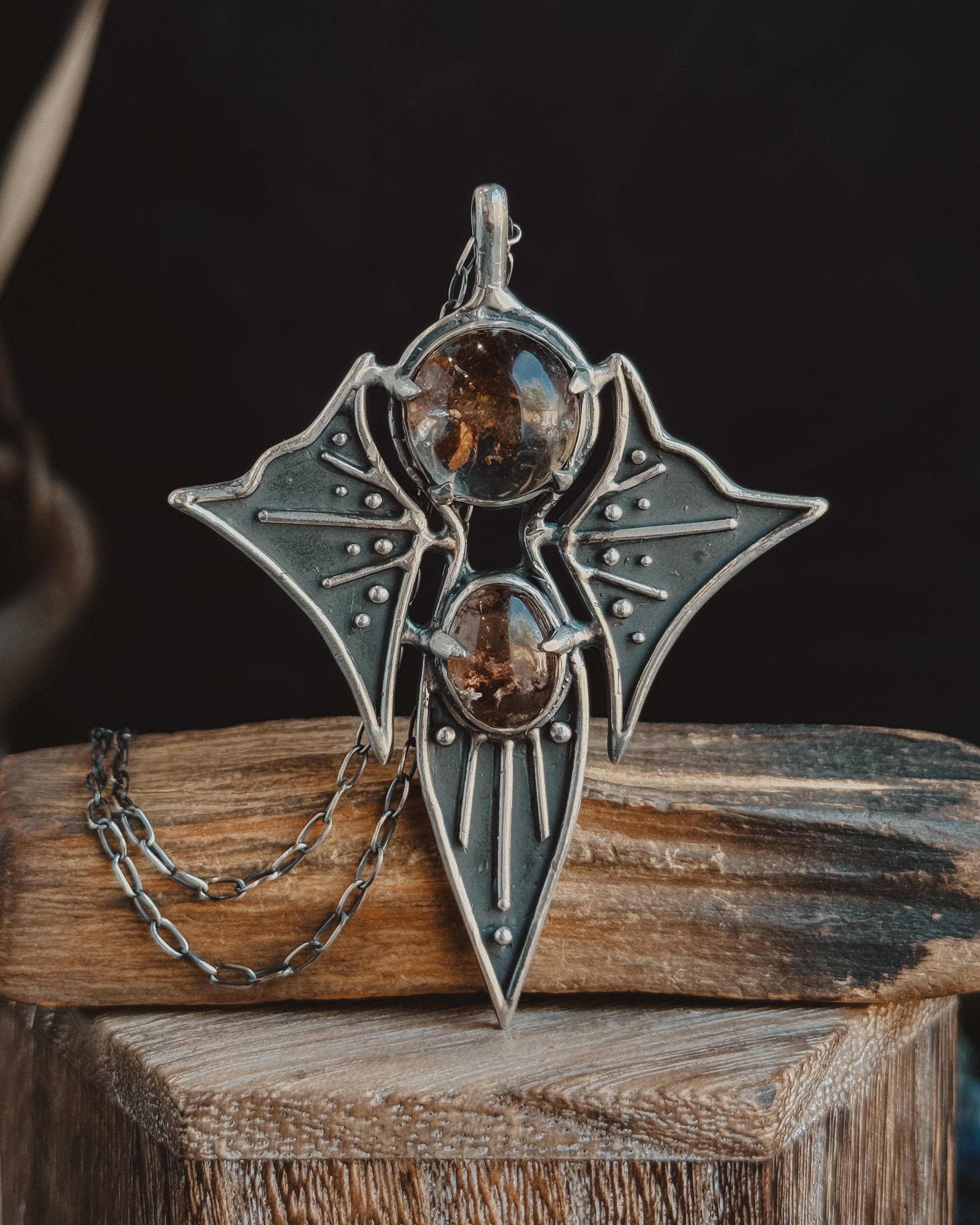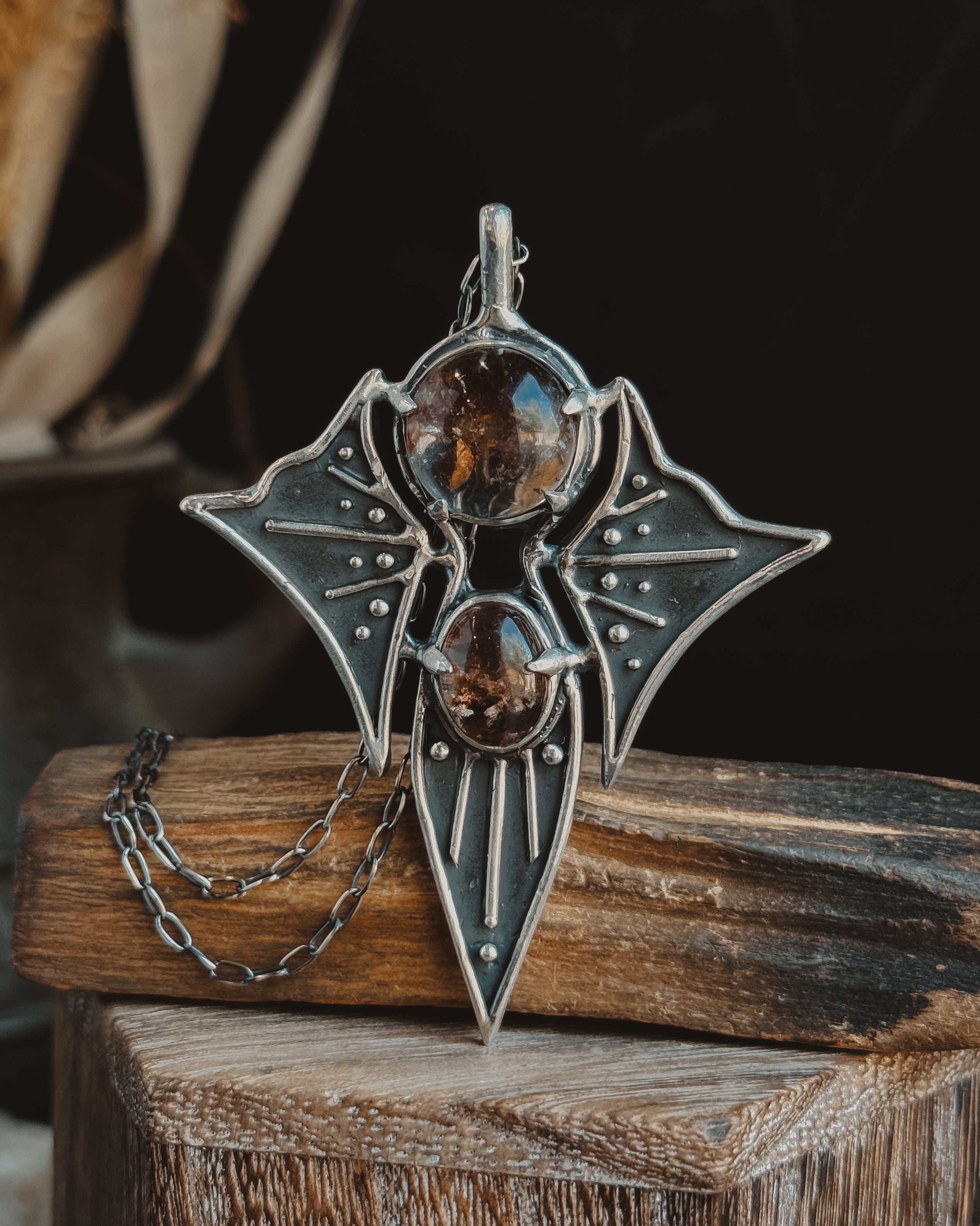 This piece is solid sterling silver including the chain and findings.Star Signals Necklace Featuring a natural Lodolite