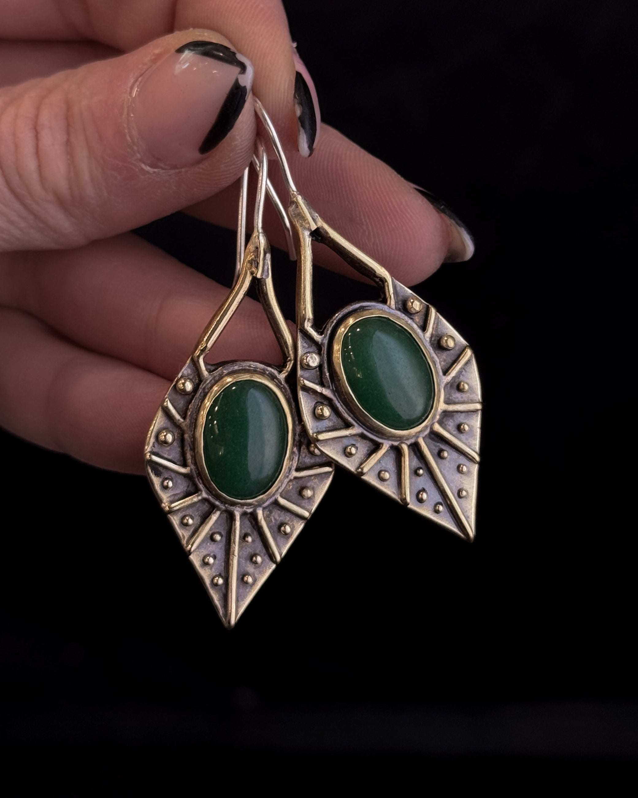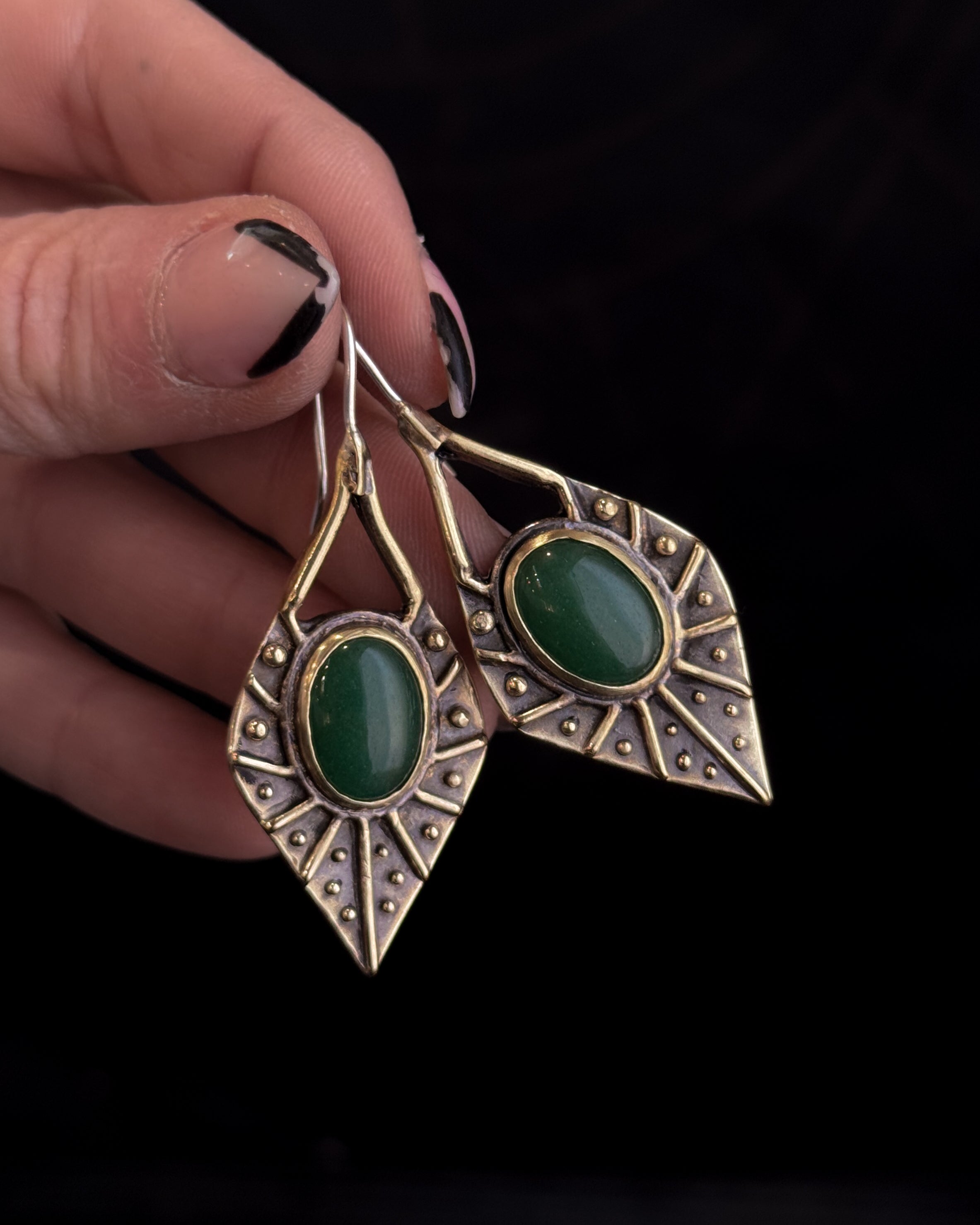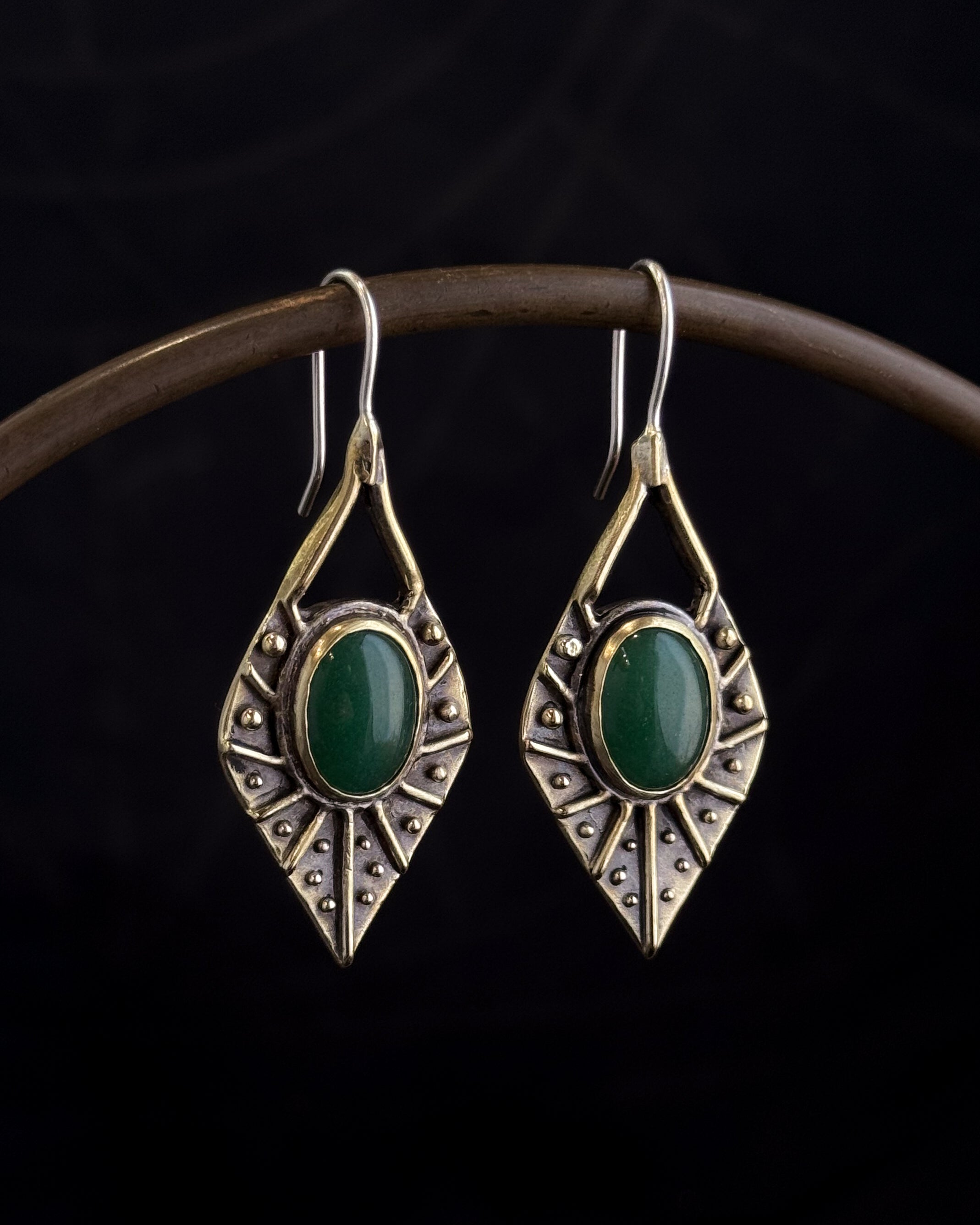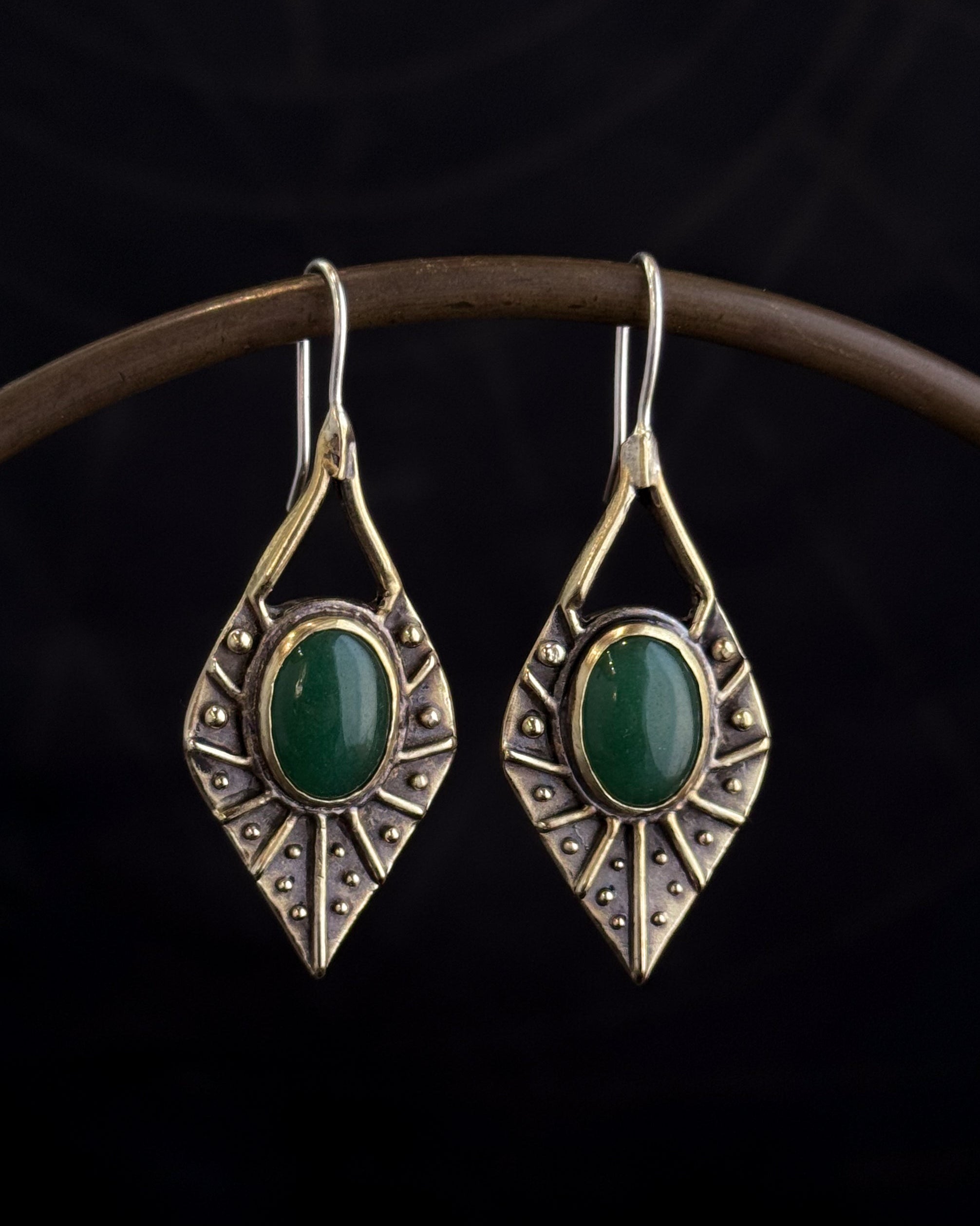 Ornamenta Earrings featuring natural Aventurine, solid brass with 18g sterling silver earwires.