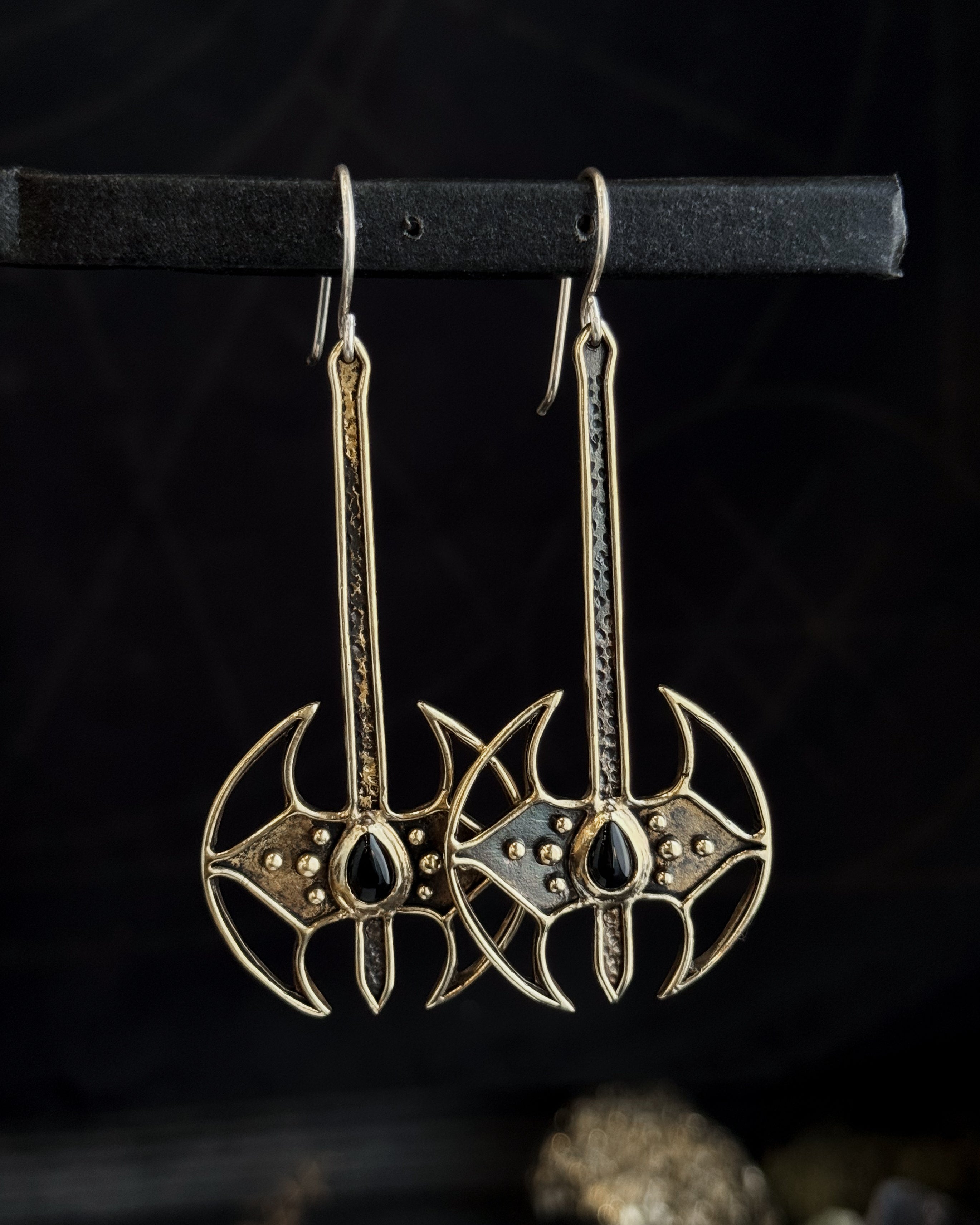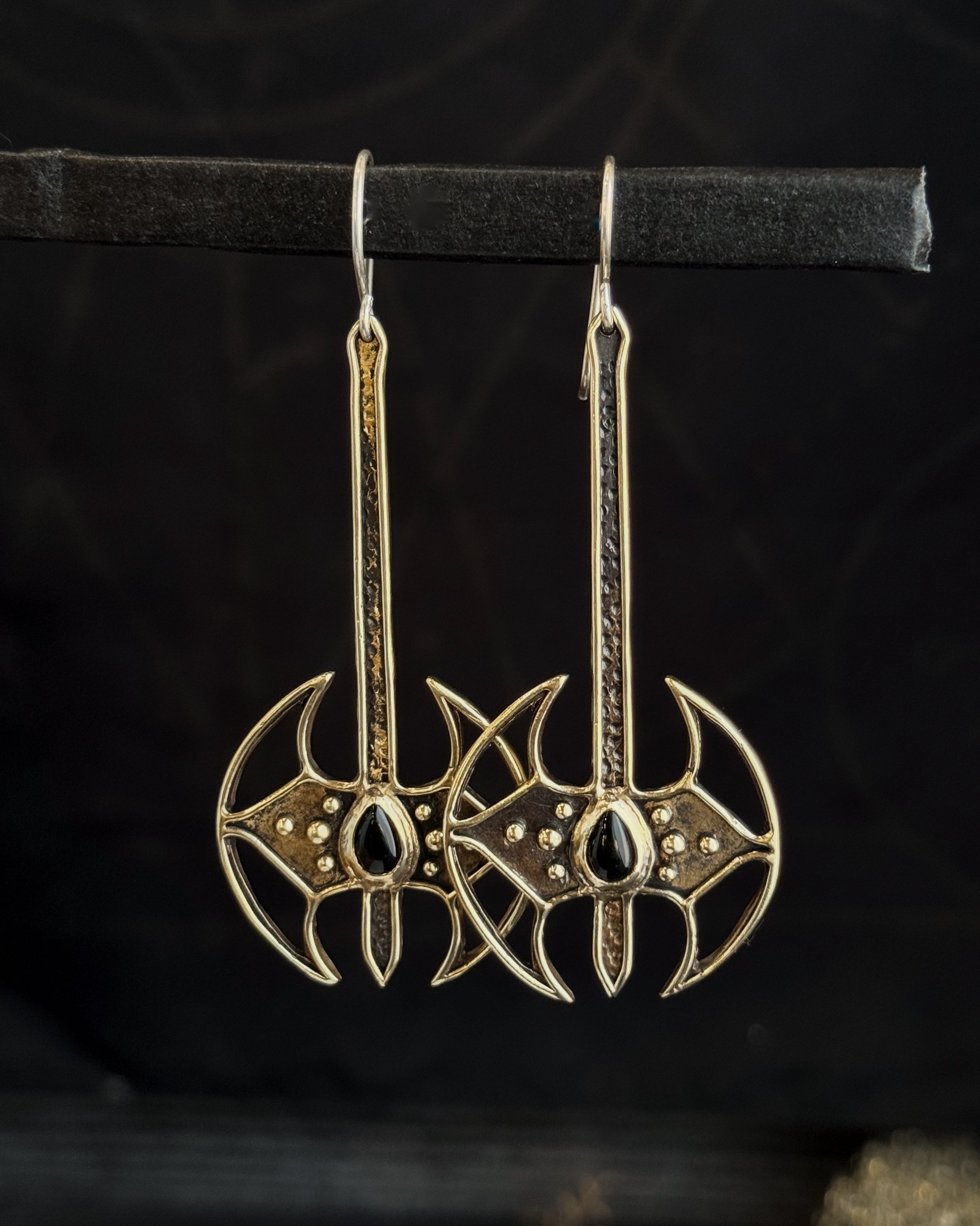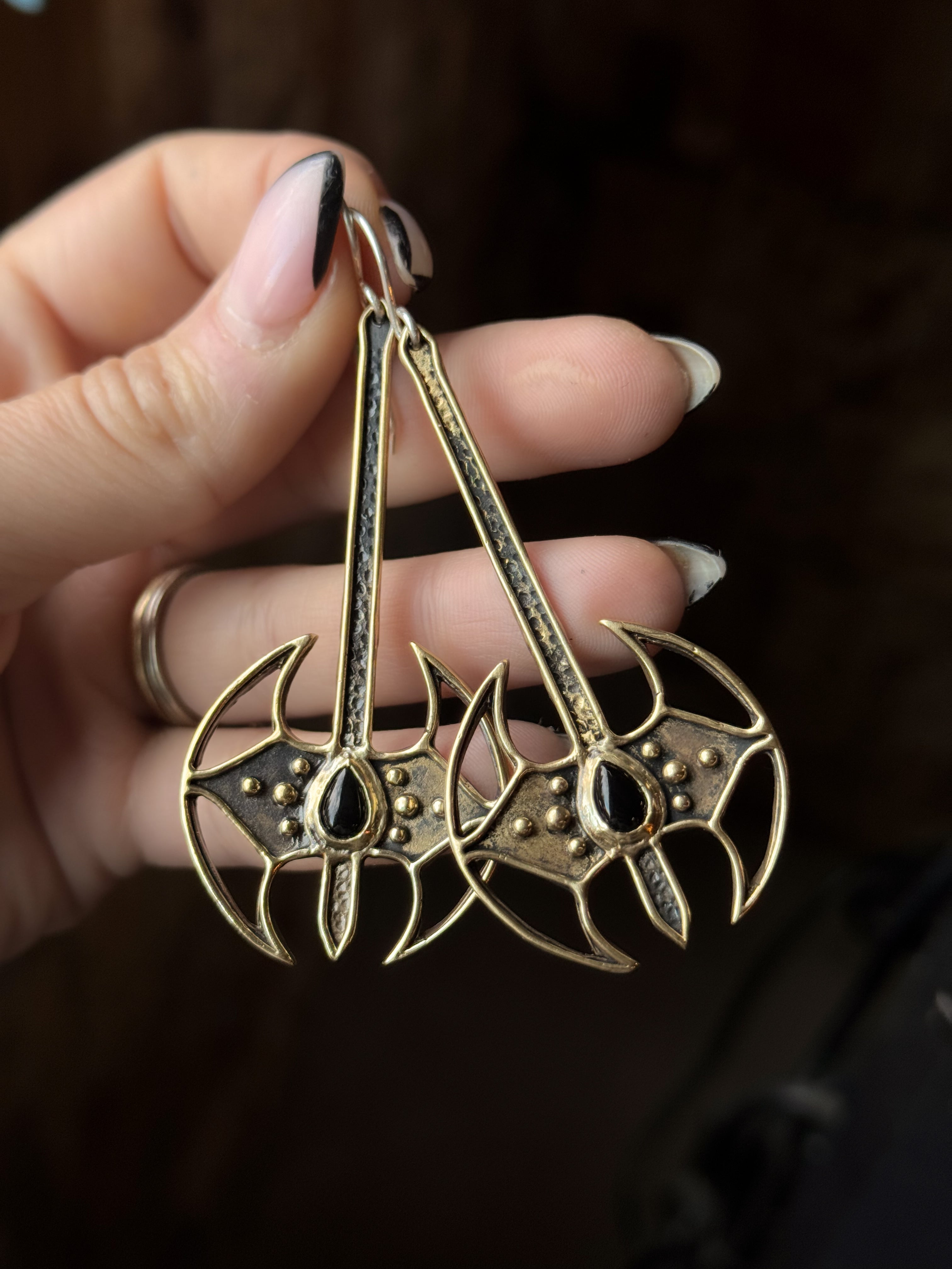 Battle Axe Dangle Earrings (Brass)// Onyx