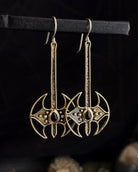 Handcrafted in darkened brass, these striking earrings embody the transformative power of the axe—its ability to penetrate barriers and create paths forward—combined with the protective absorption capabilities of Black Onyx. This powerful pairing creates wearable armor for those navigating challenging times, offering both the strength to face obstacles and the wisdom to transform negative energies.