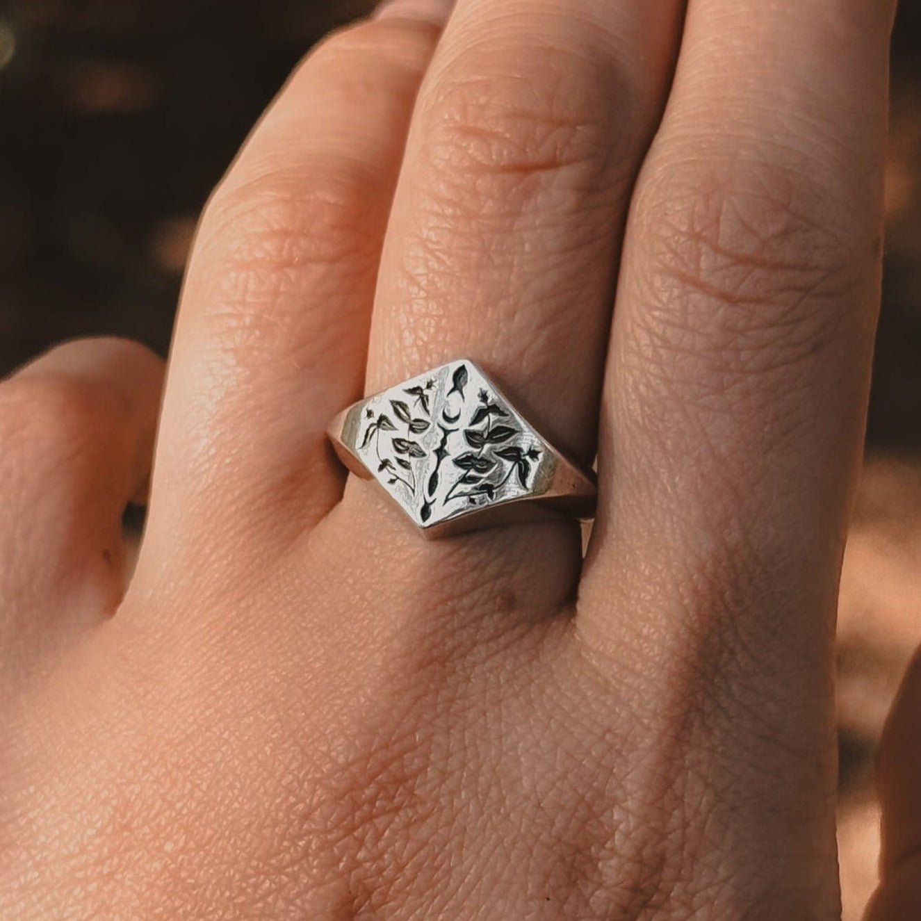 Ancient botanical wisdom, captured in hand-drawn silver talismans—each signet and shield a portal to earth's enduring magic. These meticulous renderings honor the sacred language of plants, invoking their protective and transformative powers through wearable art. Adorn yourself with these powerful symbols as a daily reminder of your connection to nature's resilience and your own wild essence.