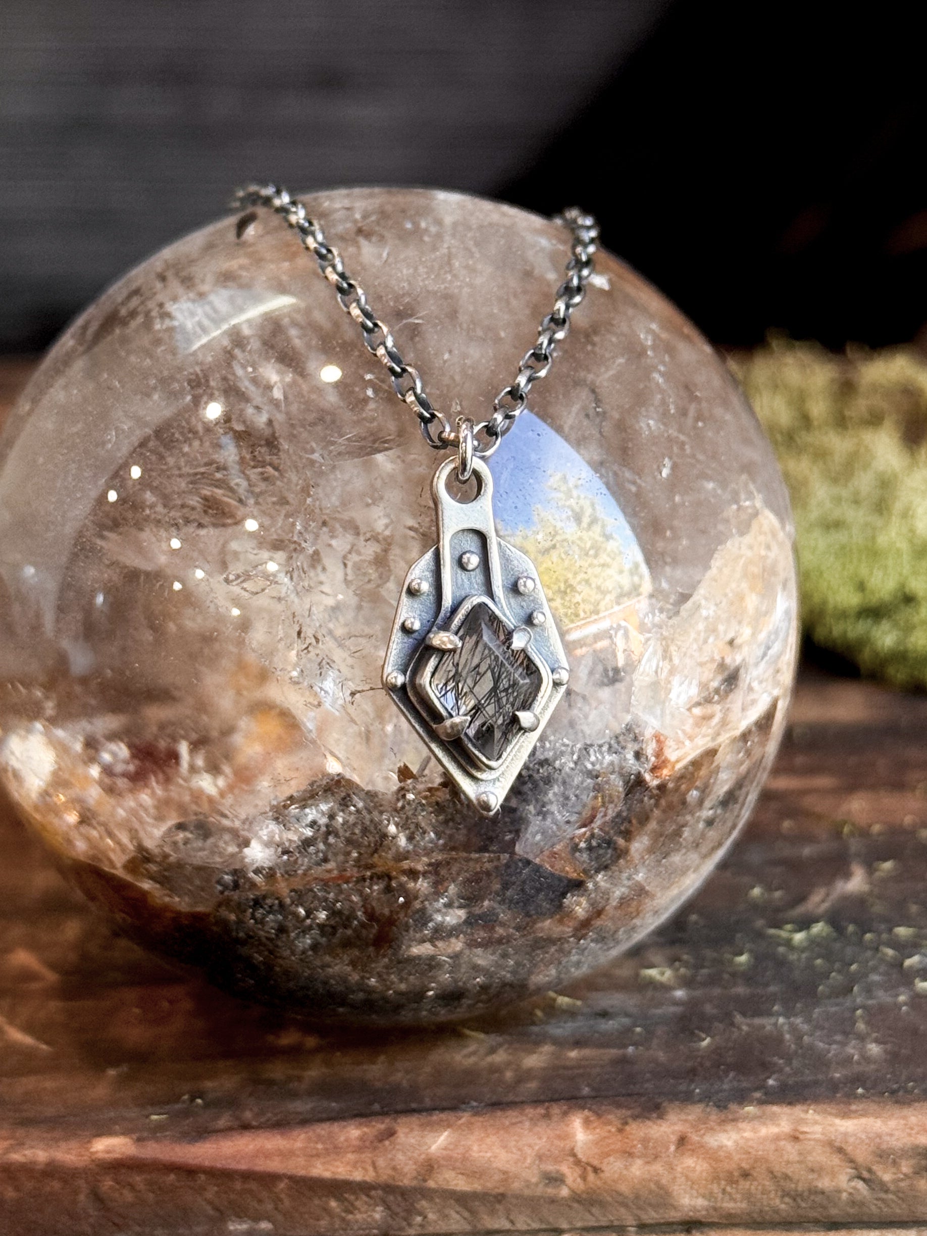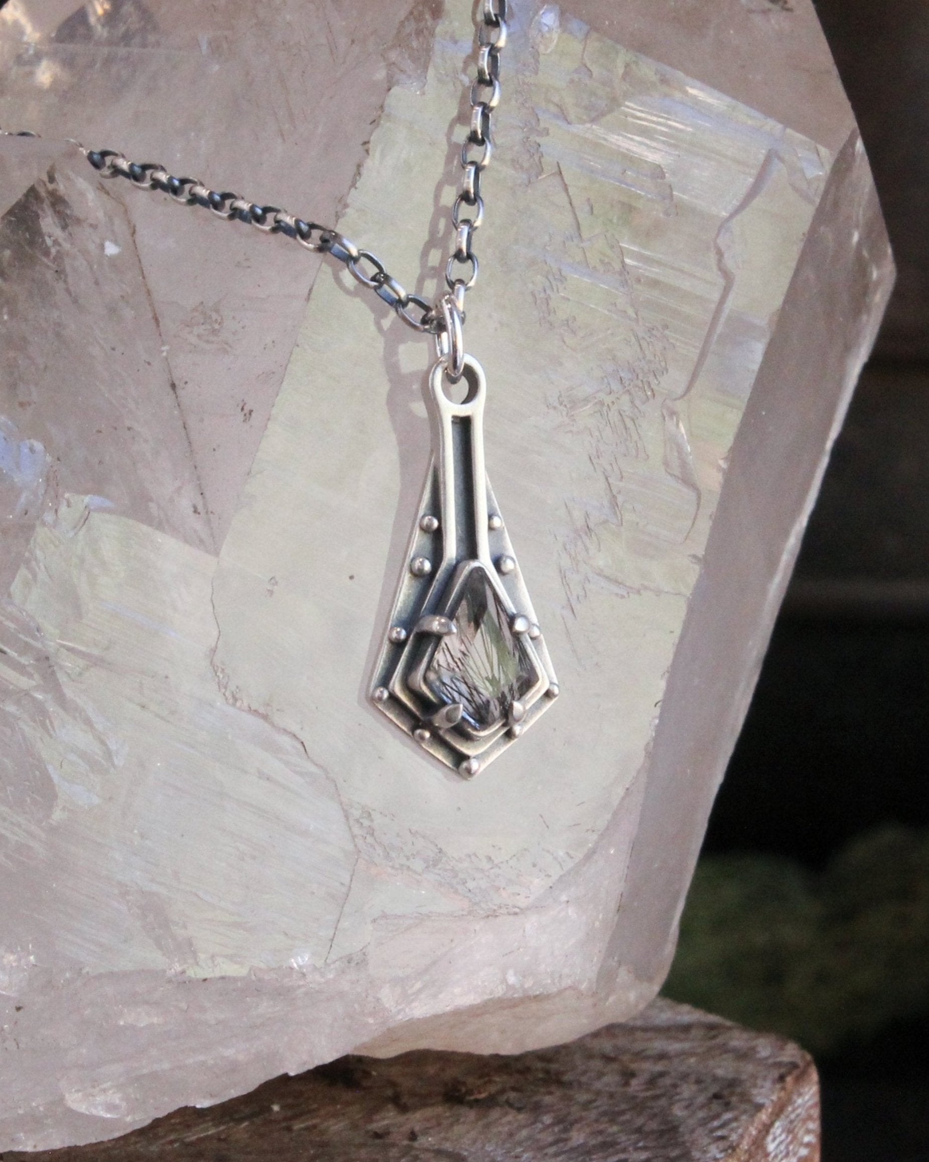 Armored Moon Necklace- Pyramid Quartz