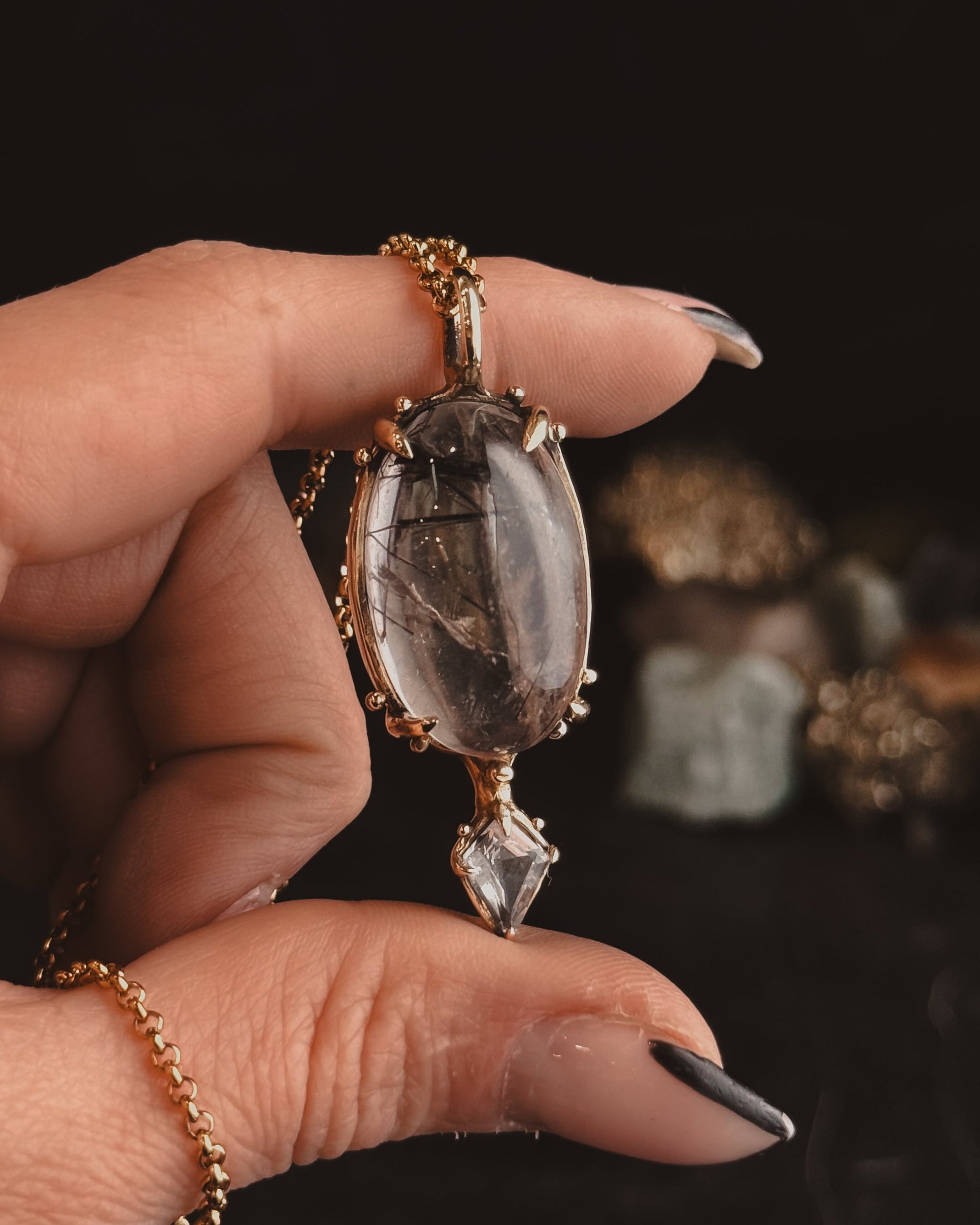Energy Protection Necklace- Tourmalated Quartz + Quartz