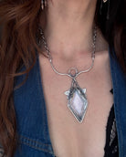This piece is hand cast in solid sterling silver. Mantra Necklace featuring a natural Faceted Quartz .
