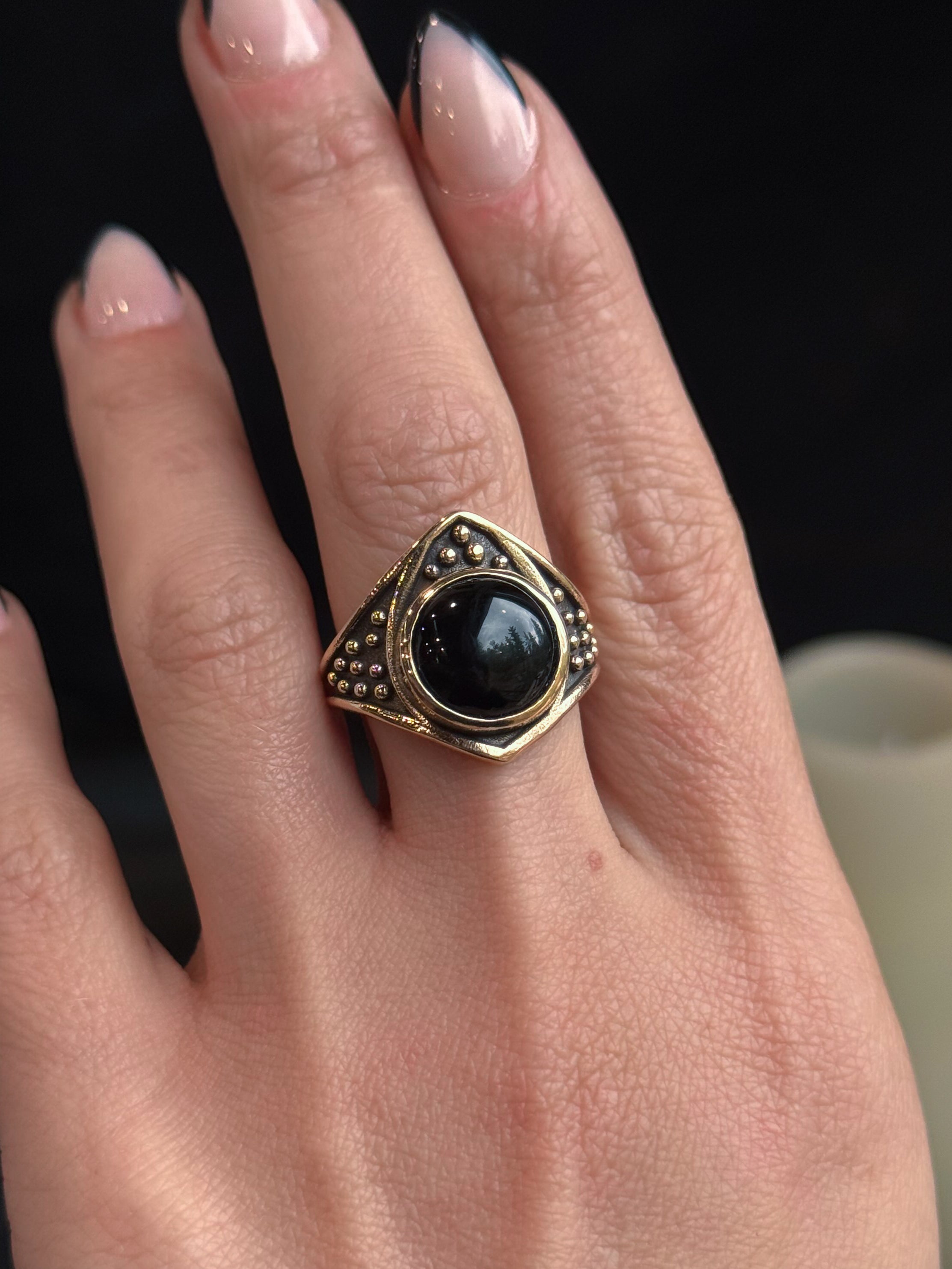 Draco Ring - Brass- Onyx Limited edition Custom Sizing available