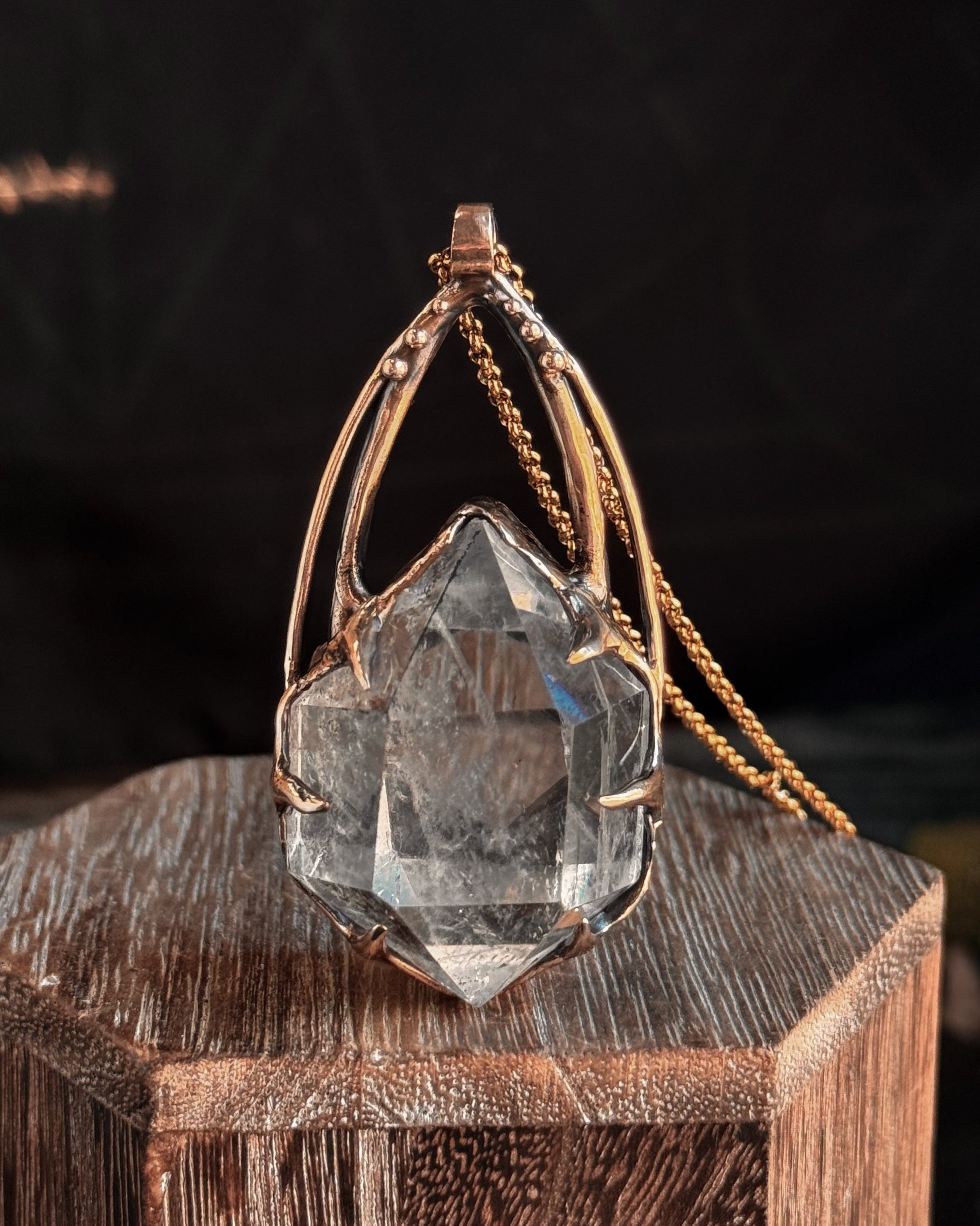 Captured Quartz Claw Necklace- Quartz (Bronze + Steel Chain)