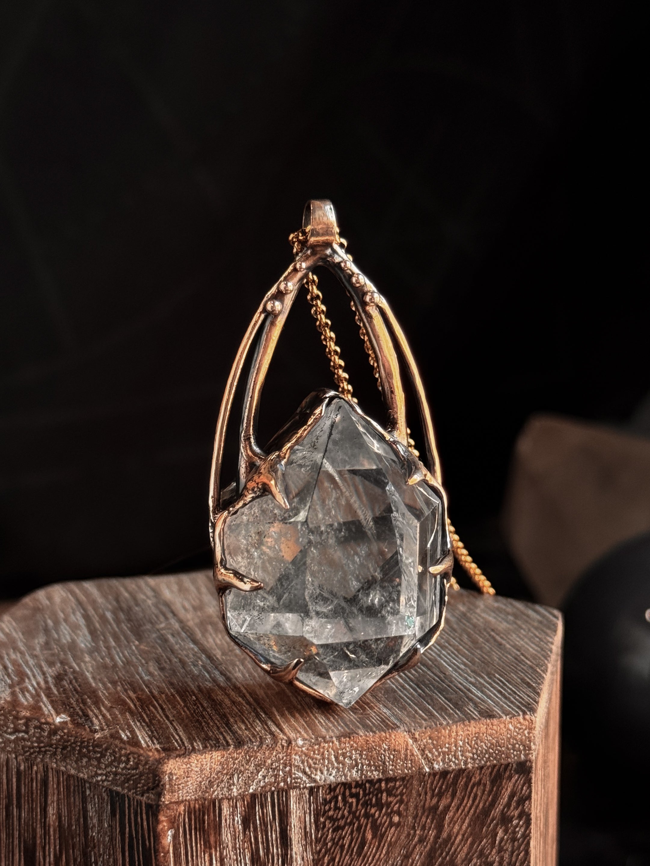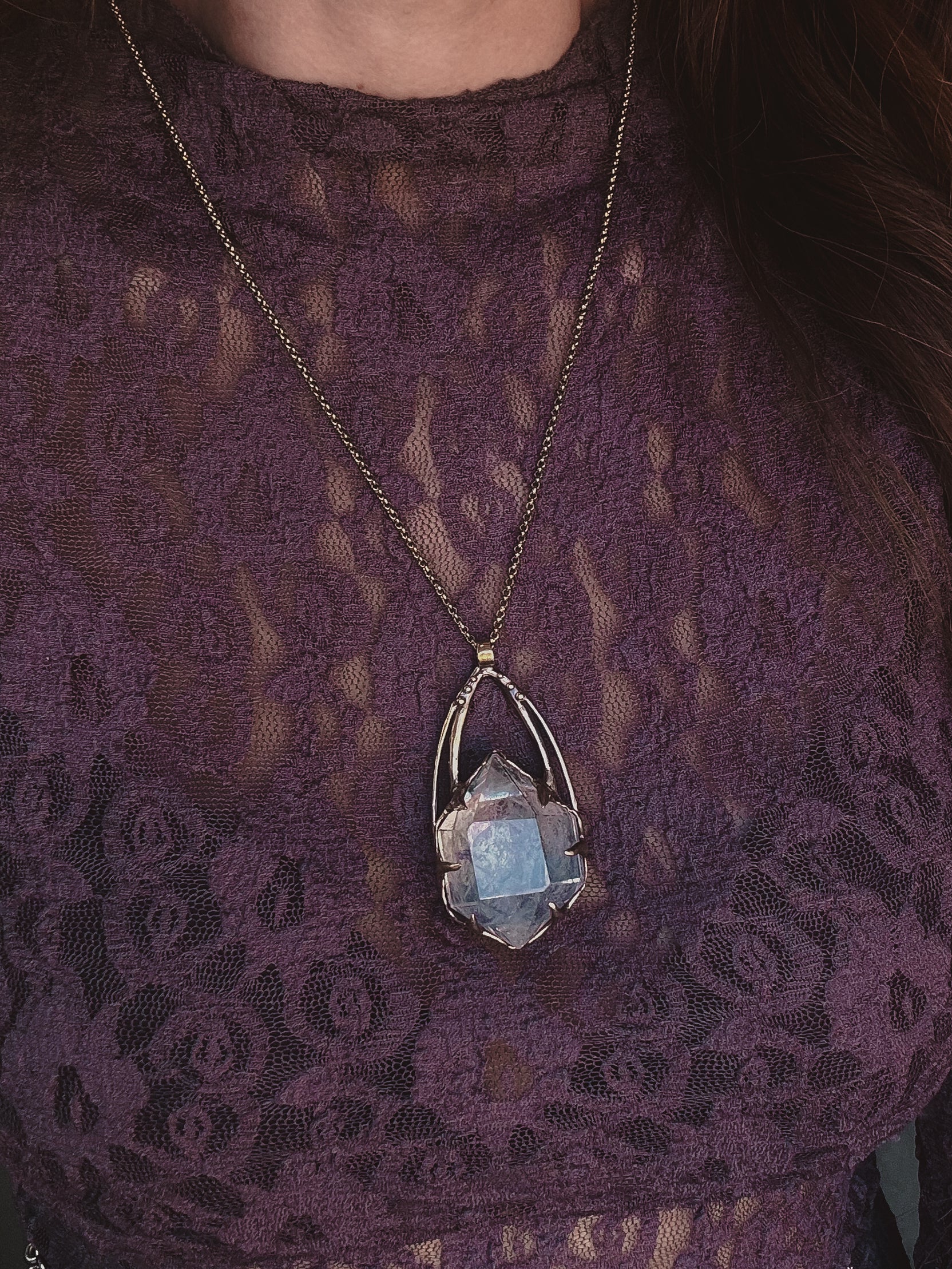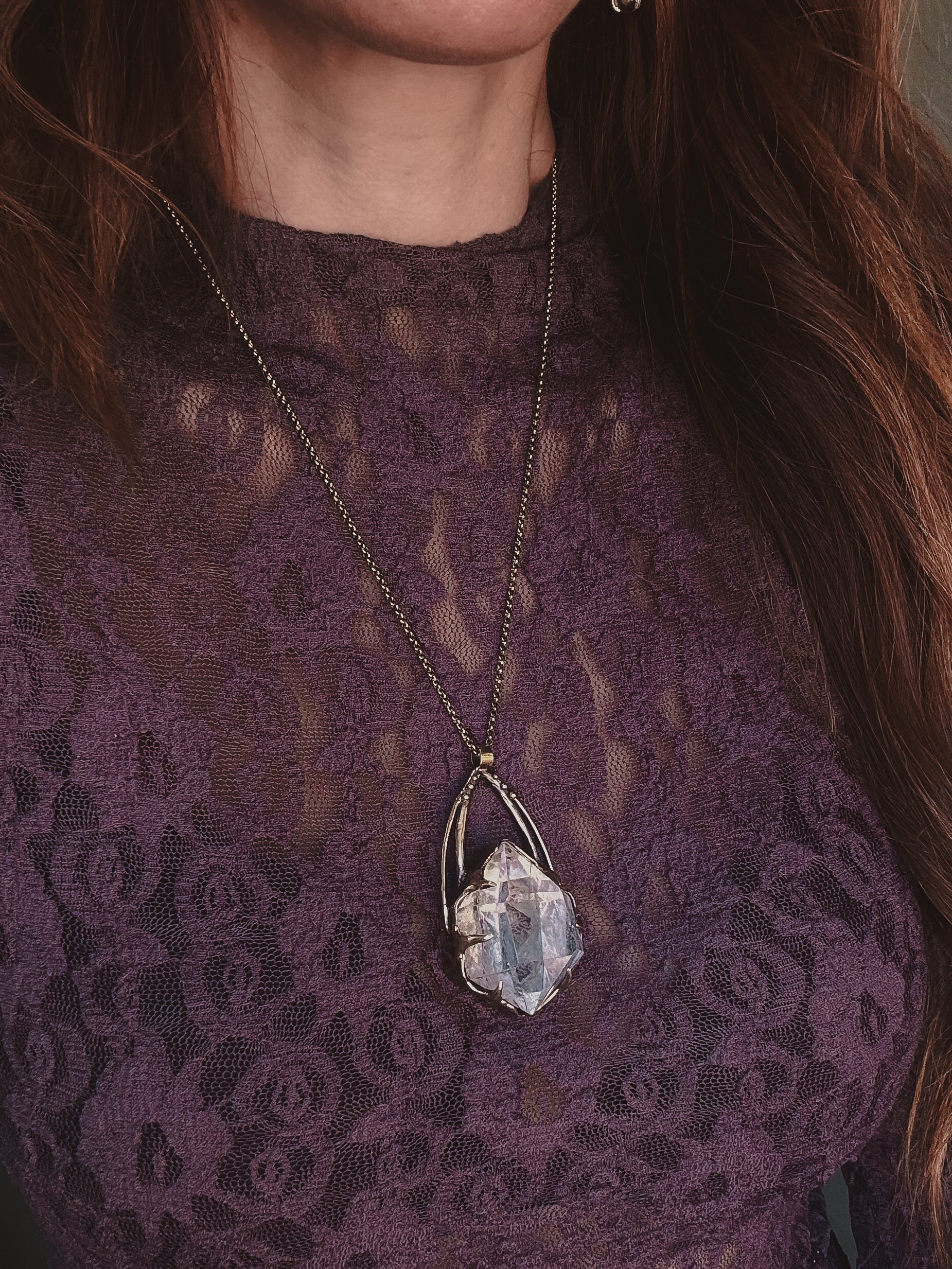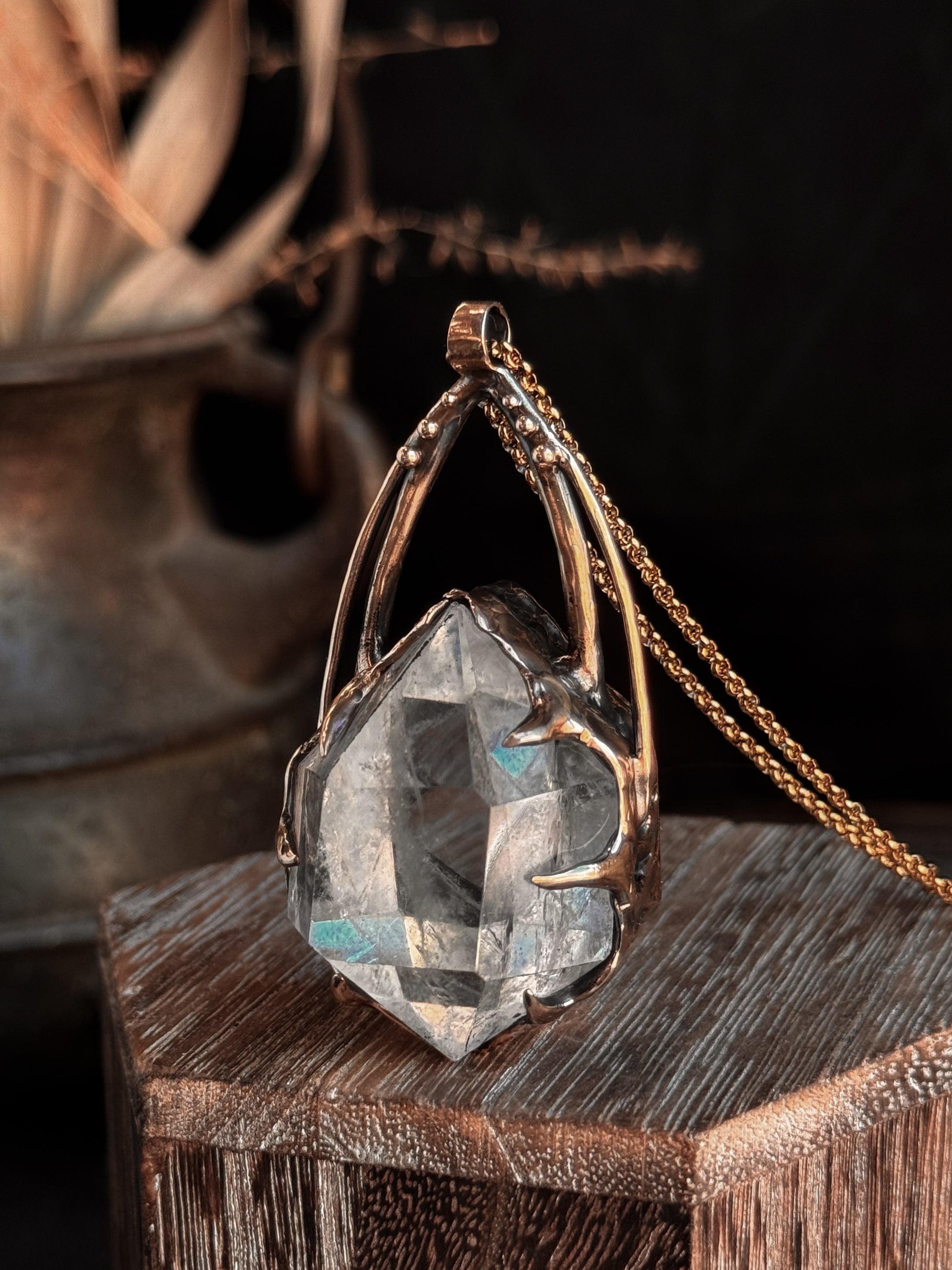 Captured Quartz Claw Necklace- Quartz (Bronze + Steel Chain)
