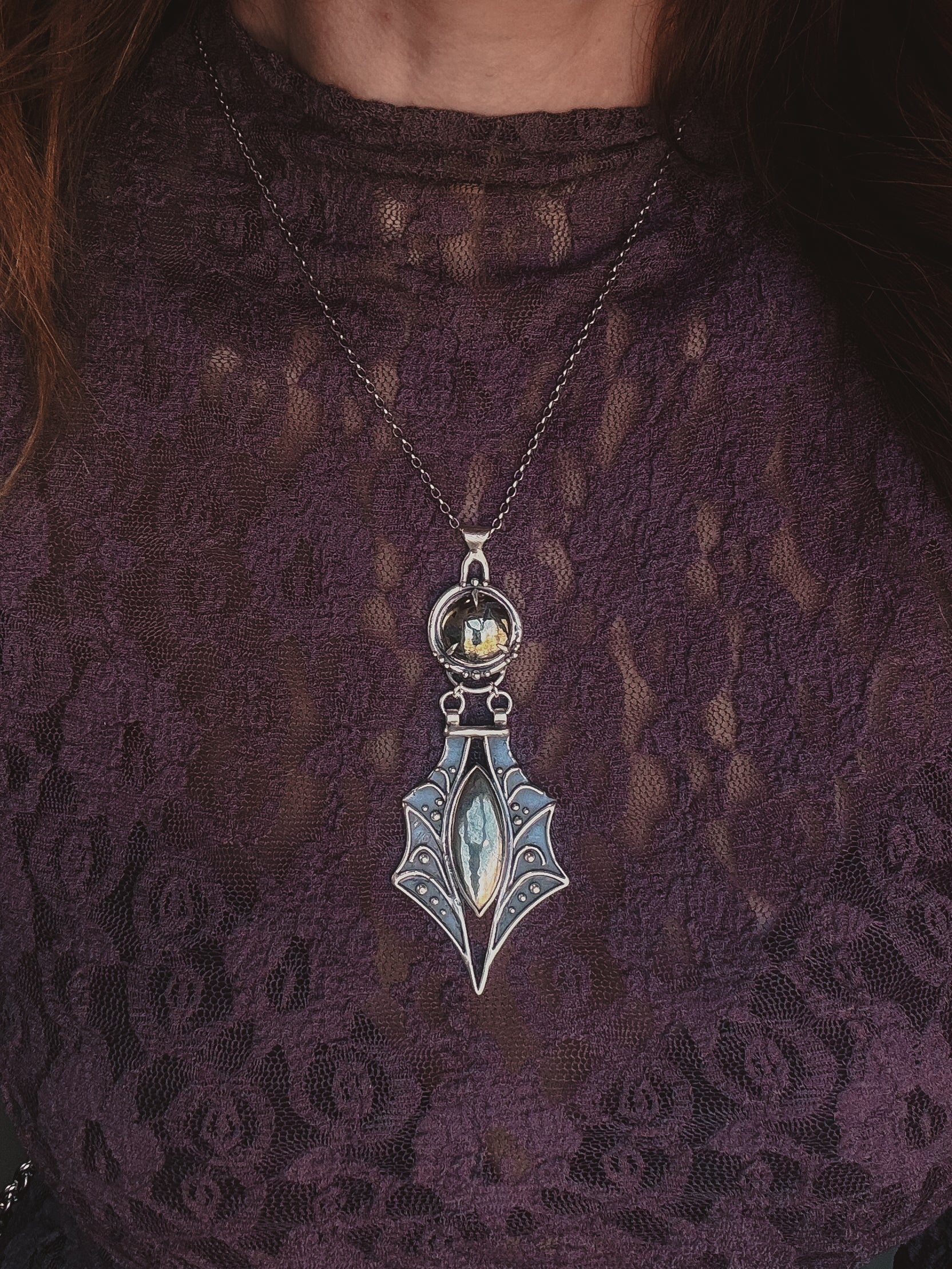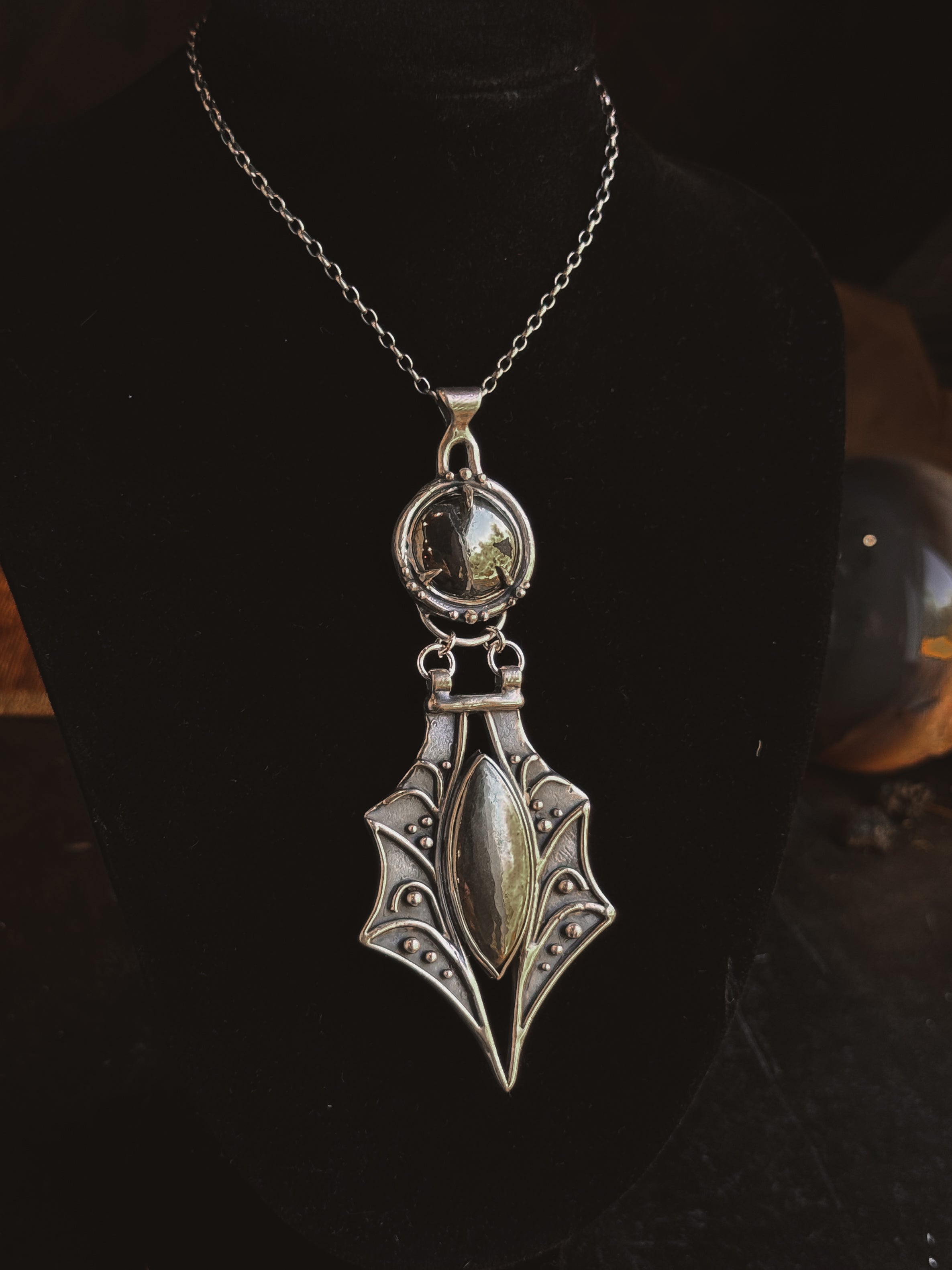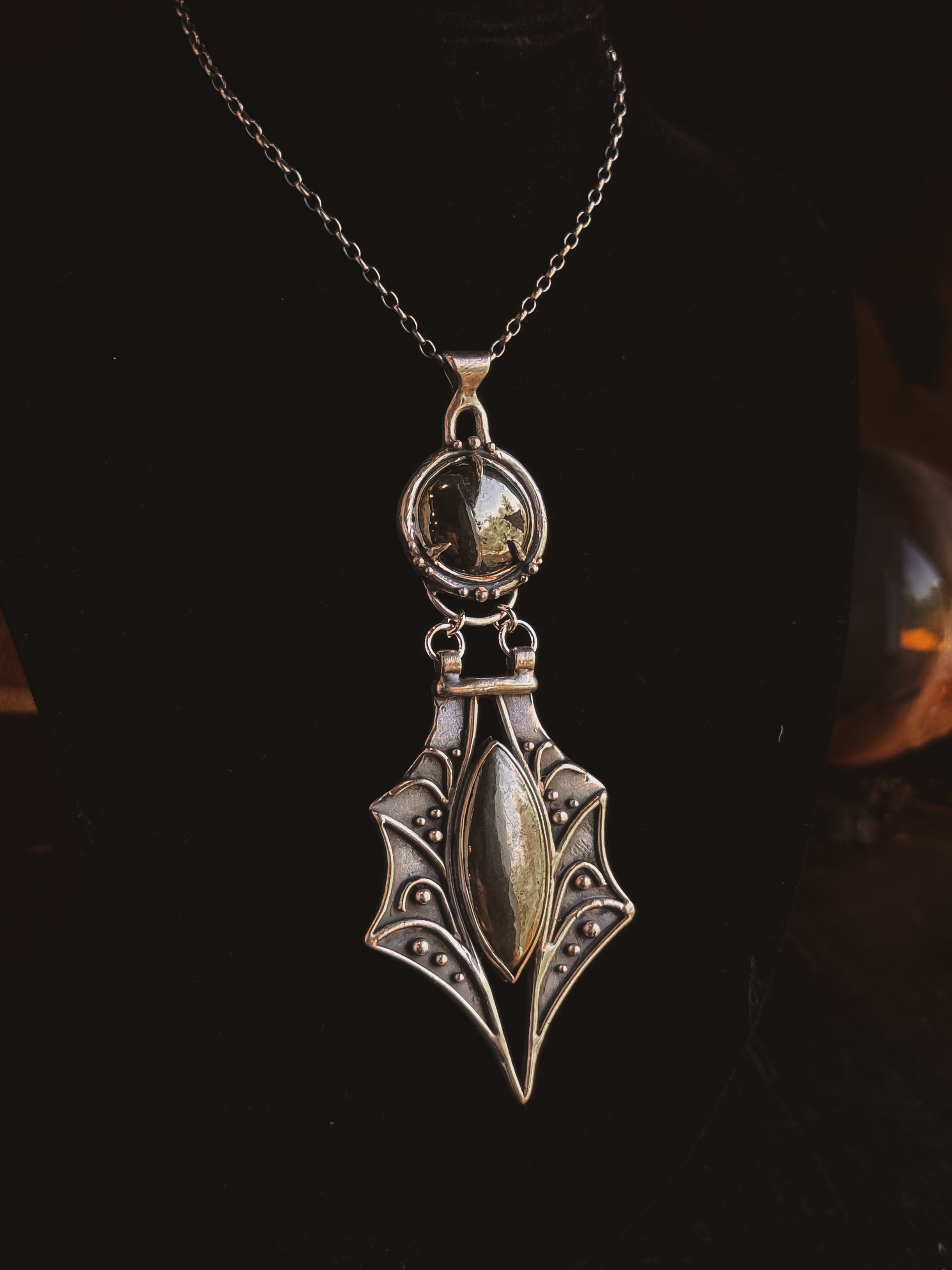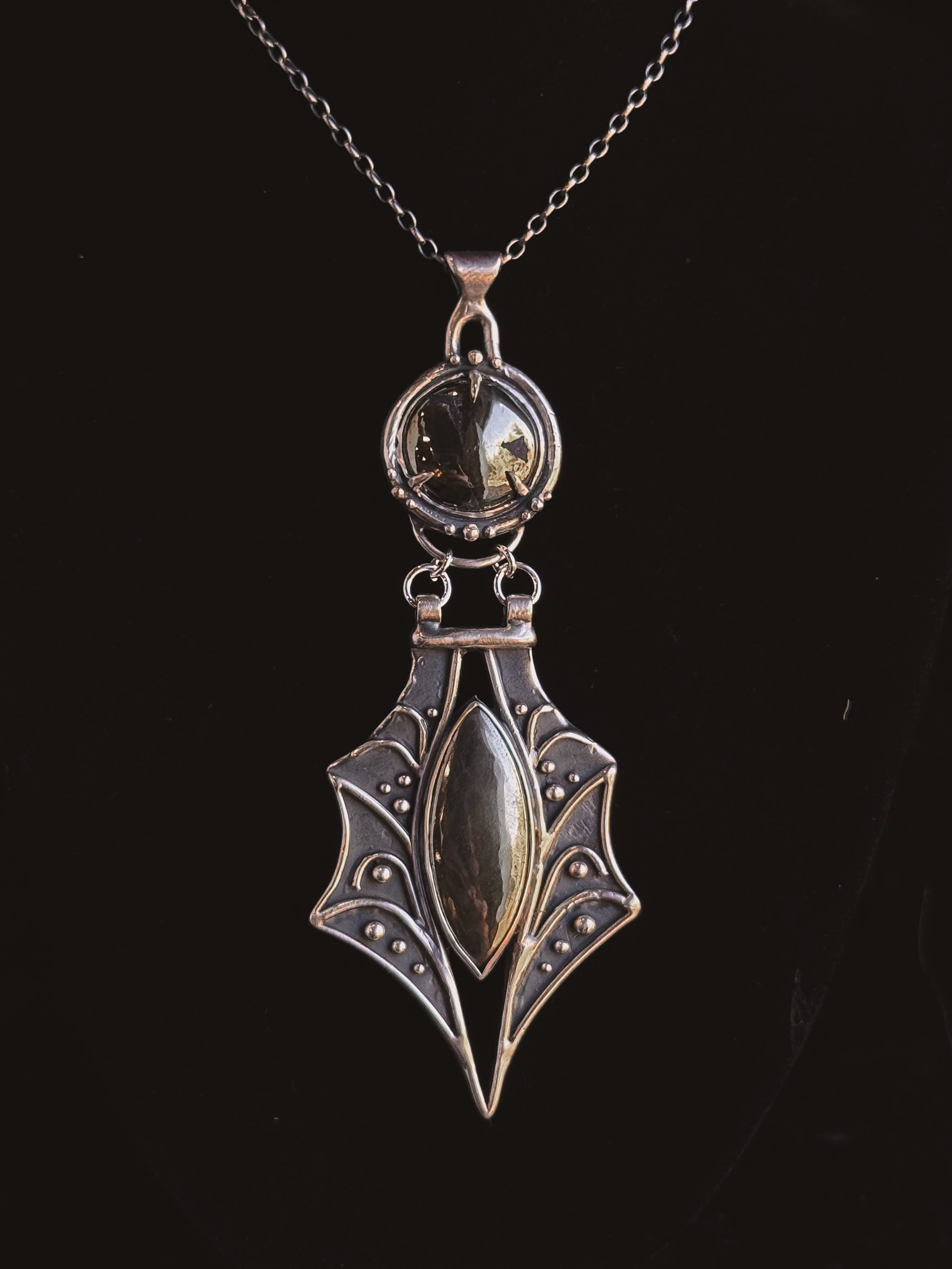 This piece is solid sterling silver including the chain and findings. Nephilim Two- Tier Necklace featuring natural Pyrite.
