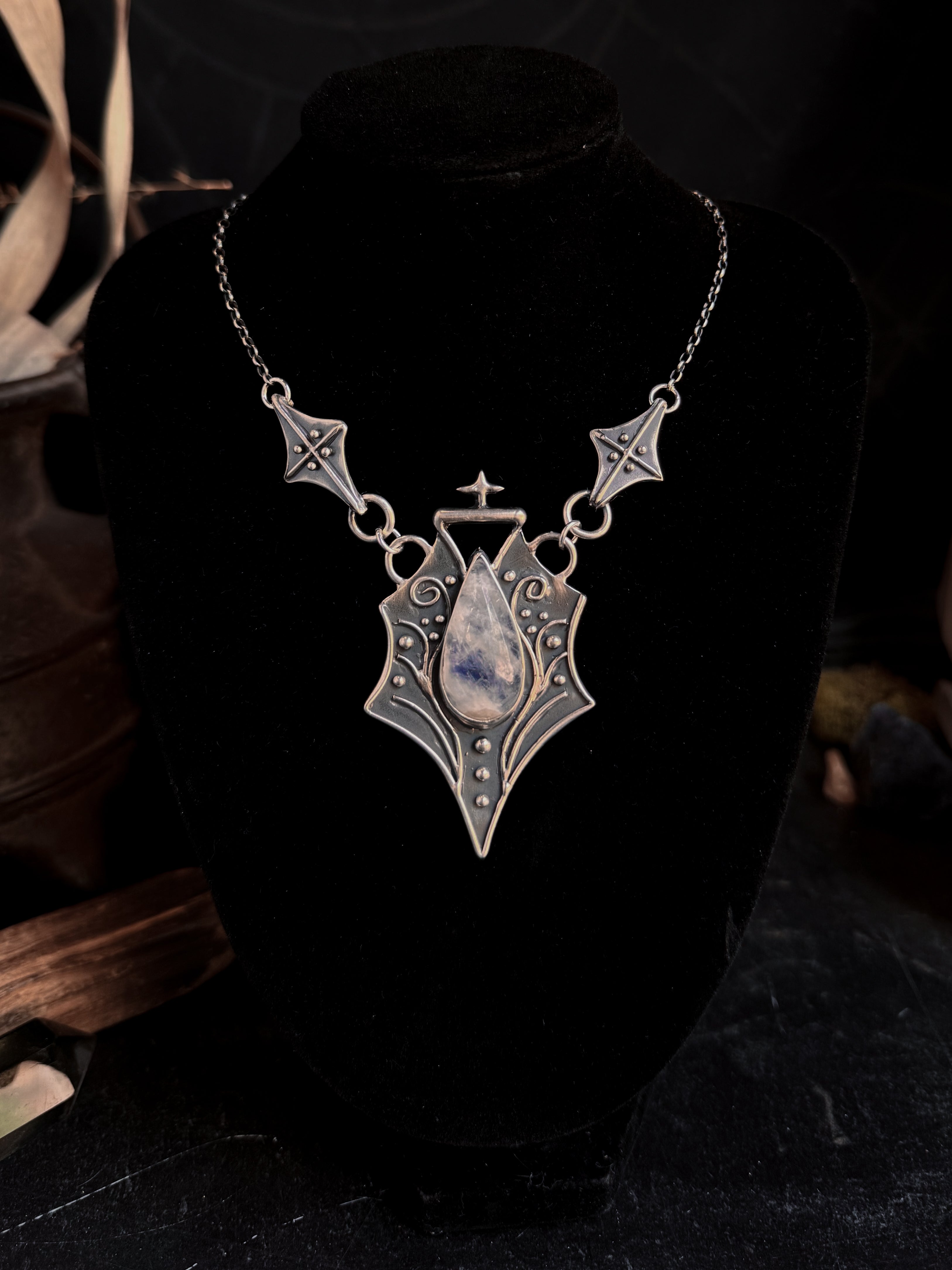 This piece is solid sterling silver including the chain and findings. Nibiru Necklace (LRG) featuring natural Rainbow Moonstone