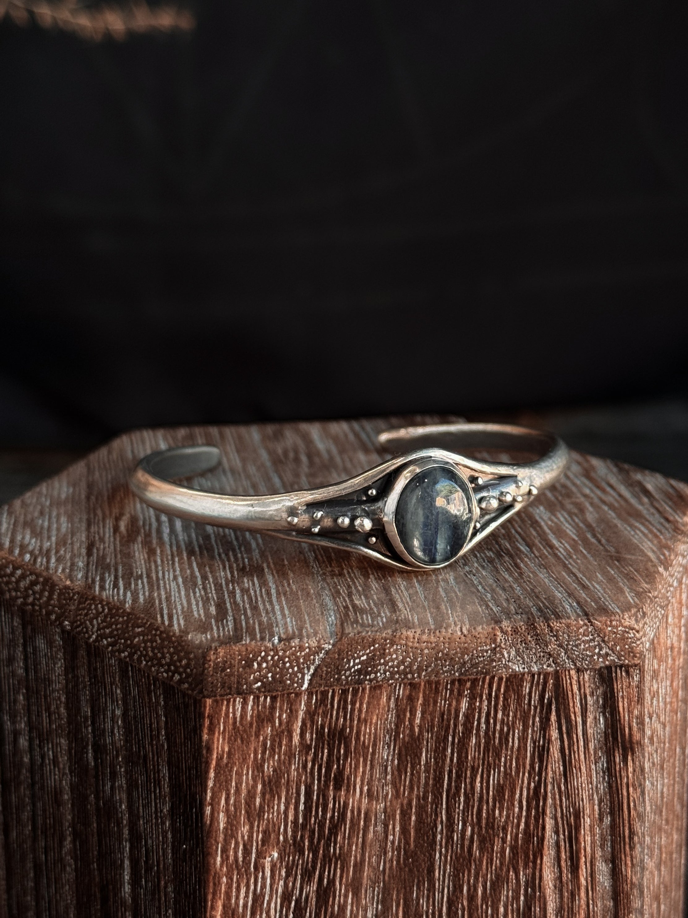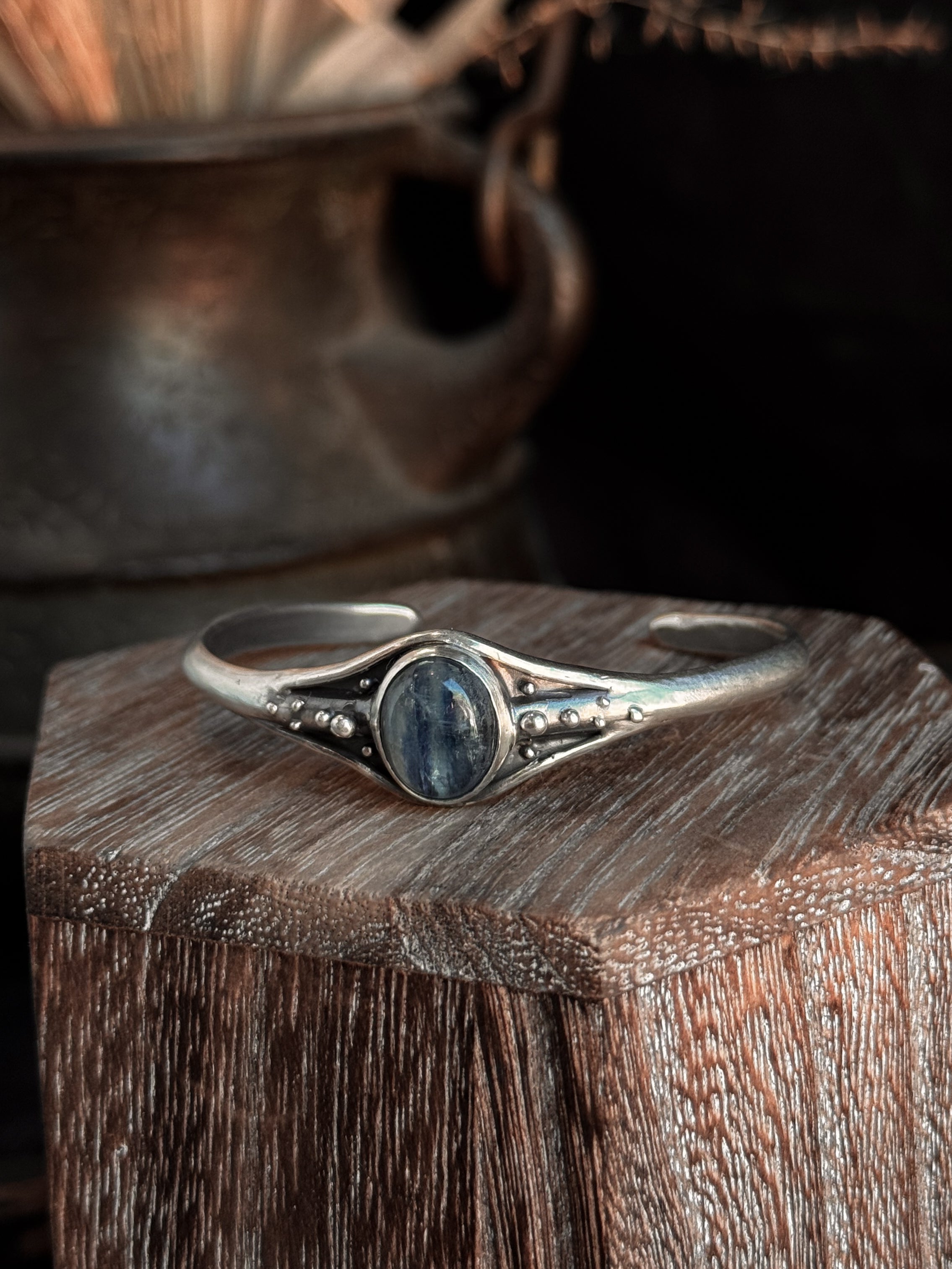 Sterling silver hand fabricated Star Stacker Cuff Bracelet featuring an natural Kyanite.