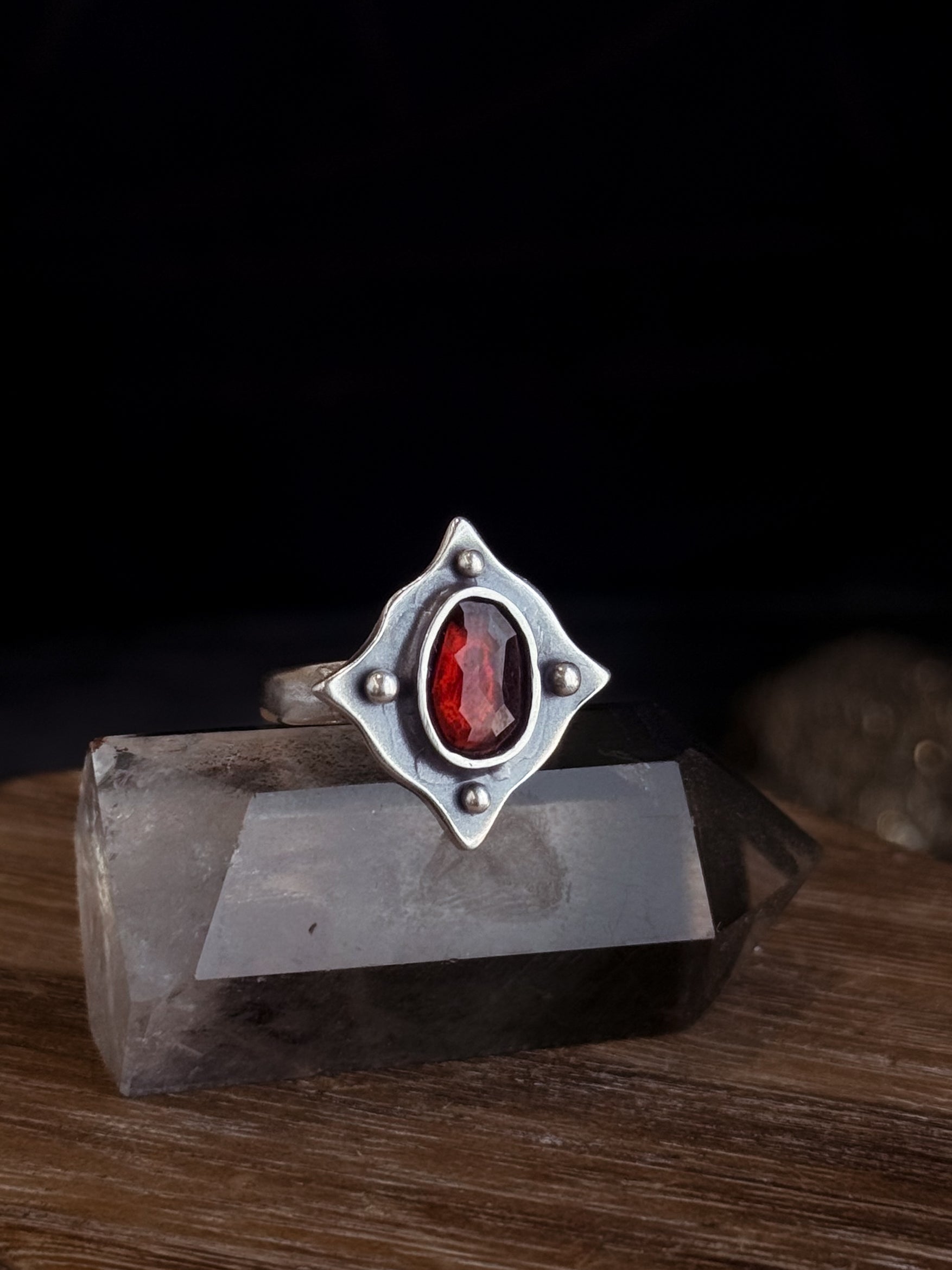Persephone's Shield Ring | Garnet + Sterling Silver (Custom sizing available)