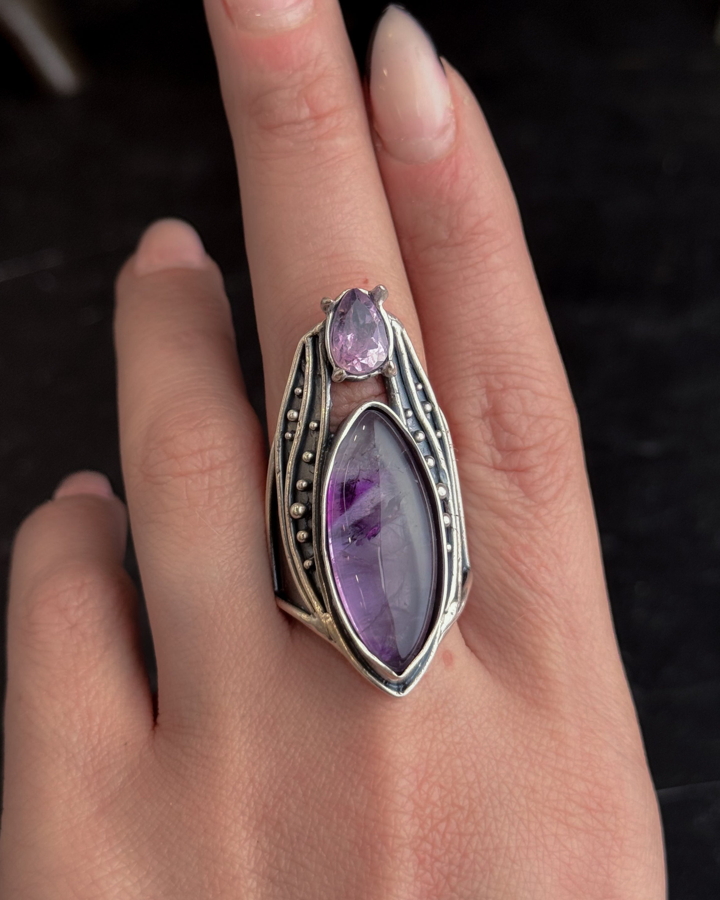 Calming Force Ring- Double Amethyst - Custom sizing available