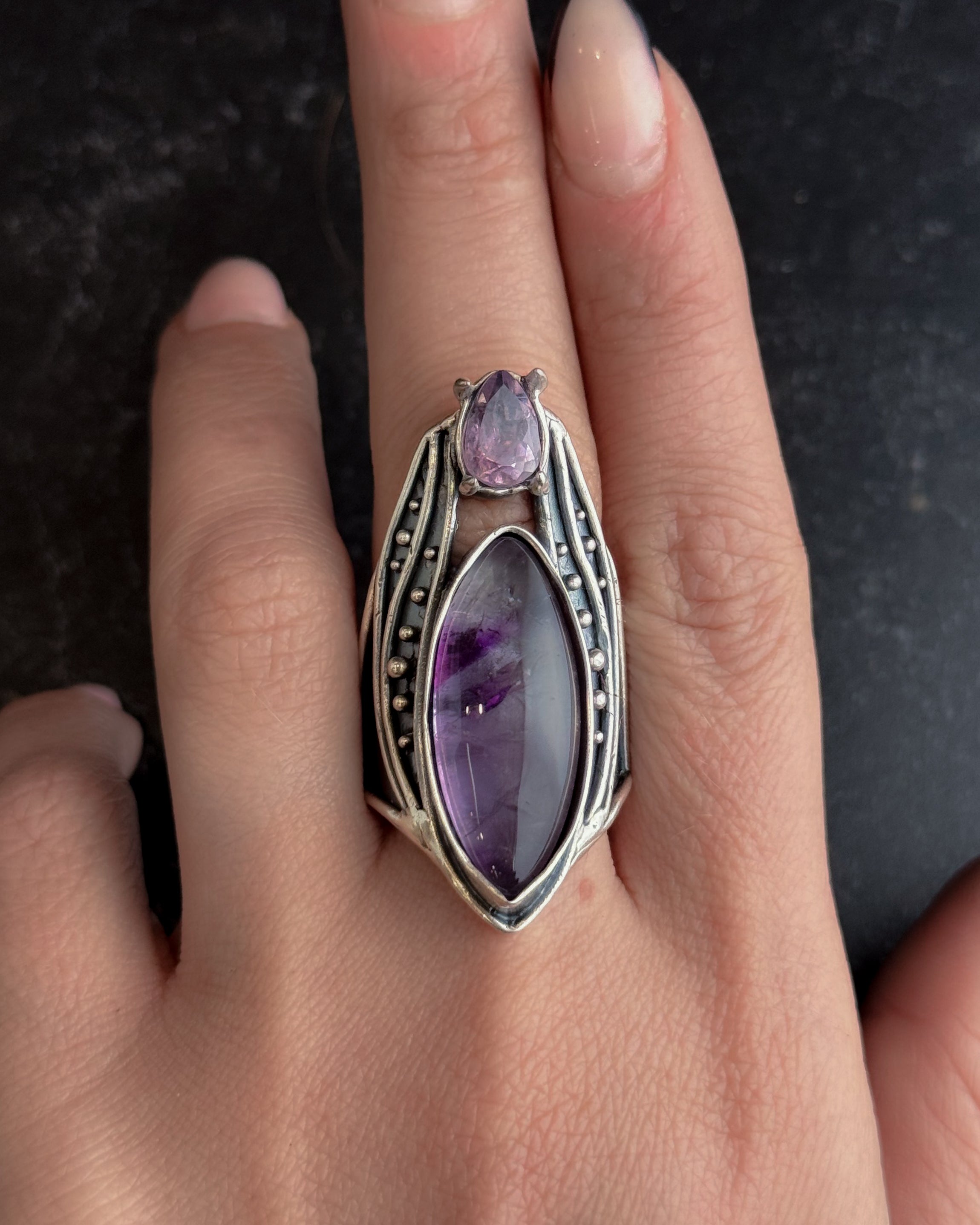 Calming Force Ring- Double Amethyst - Custom sizing available