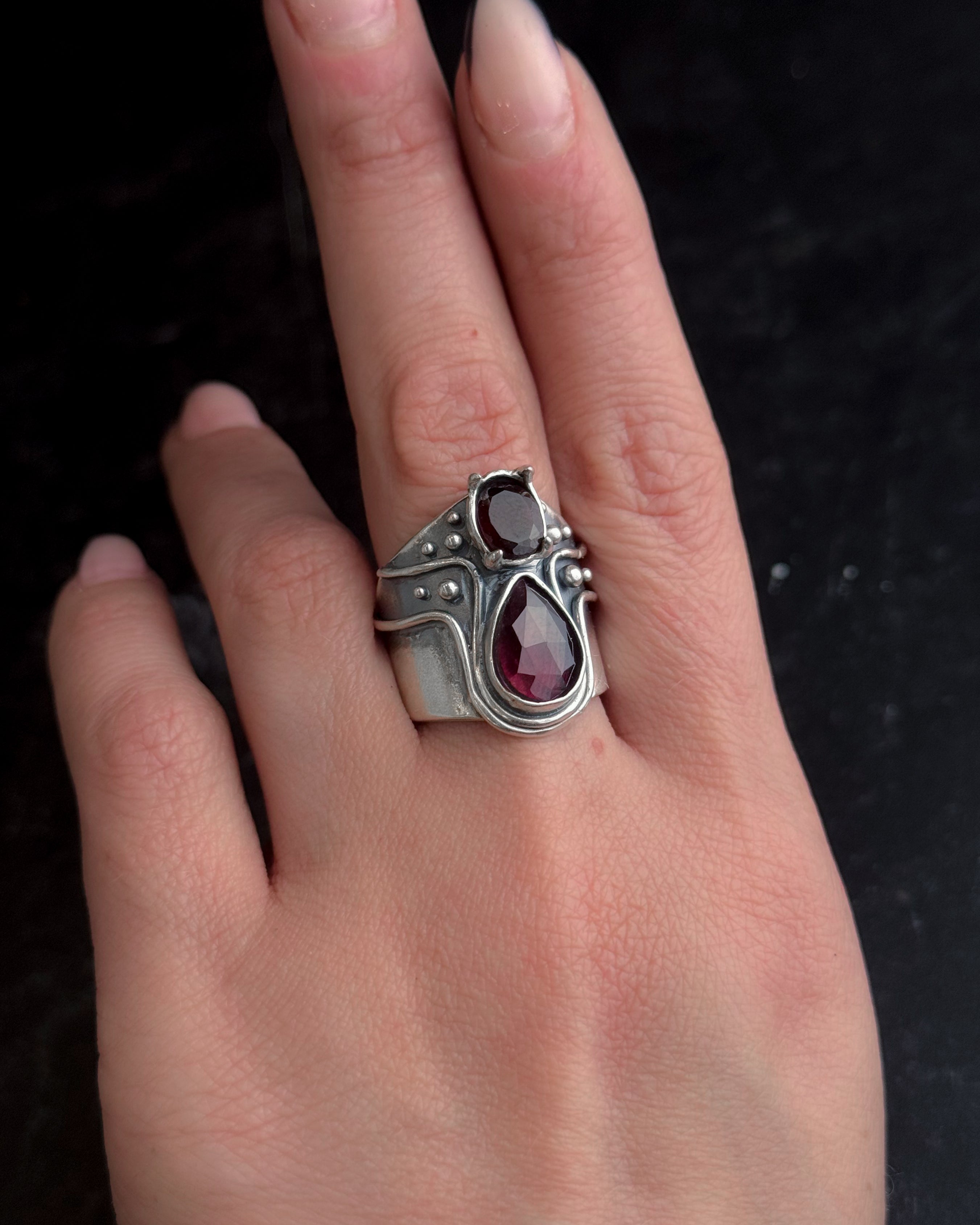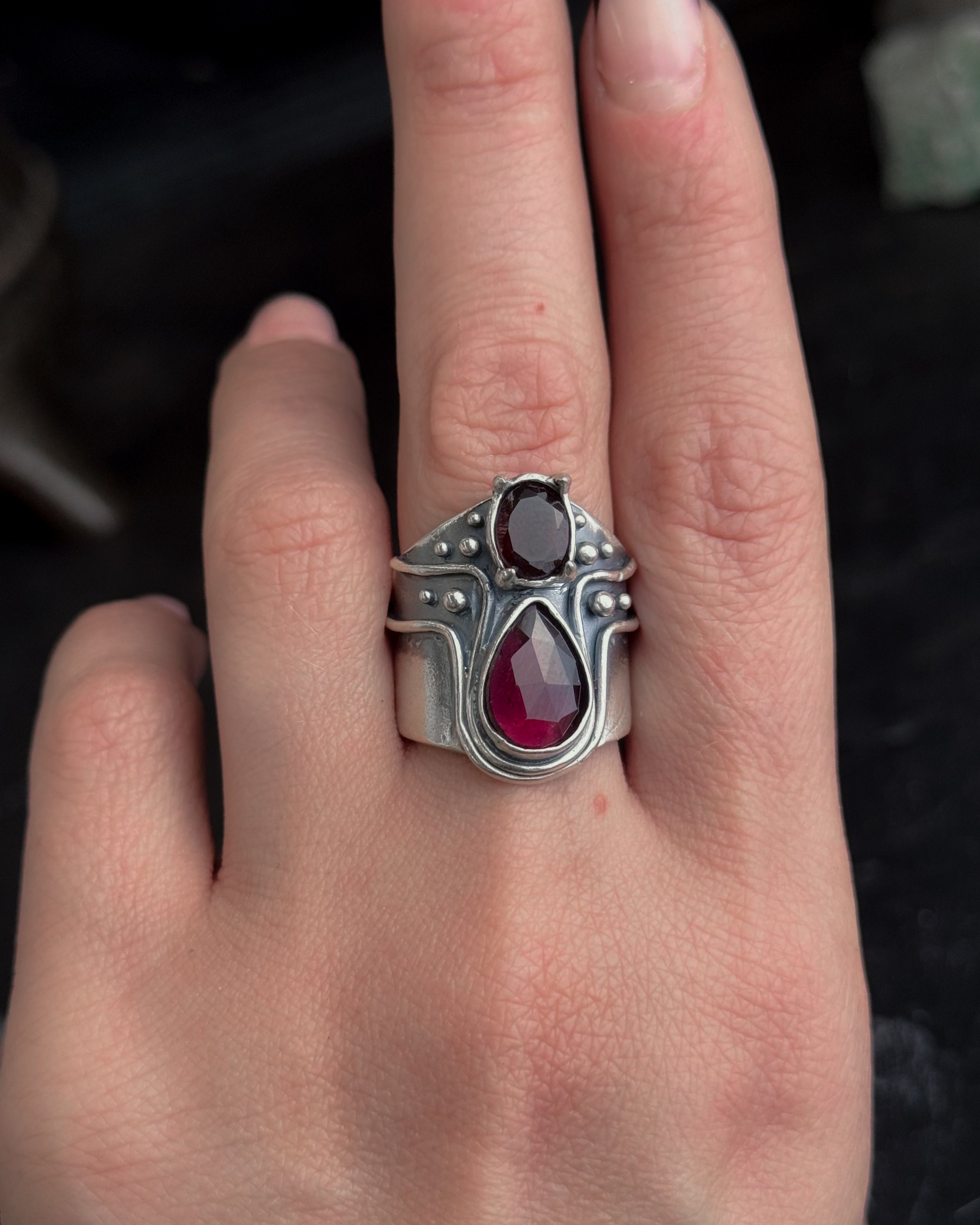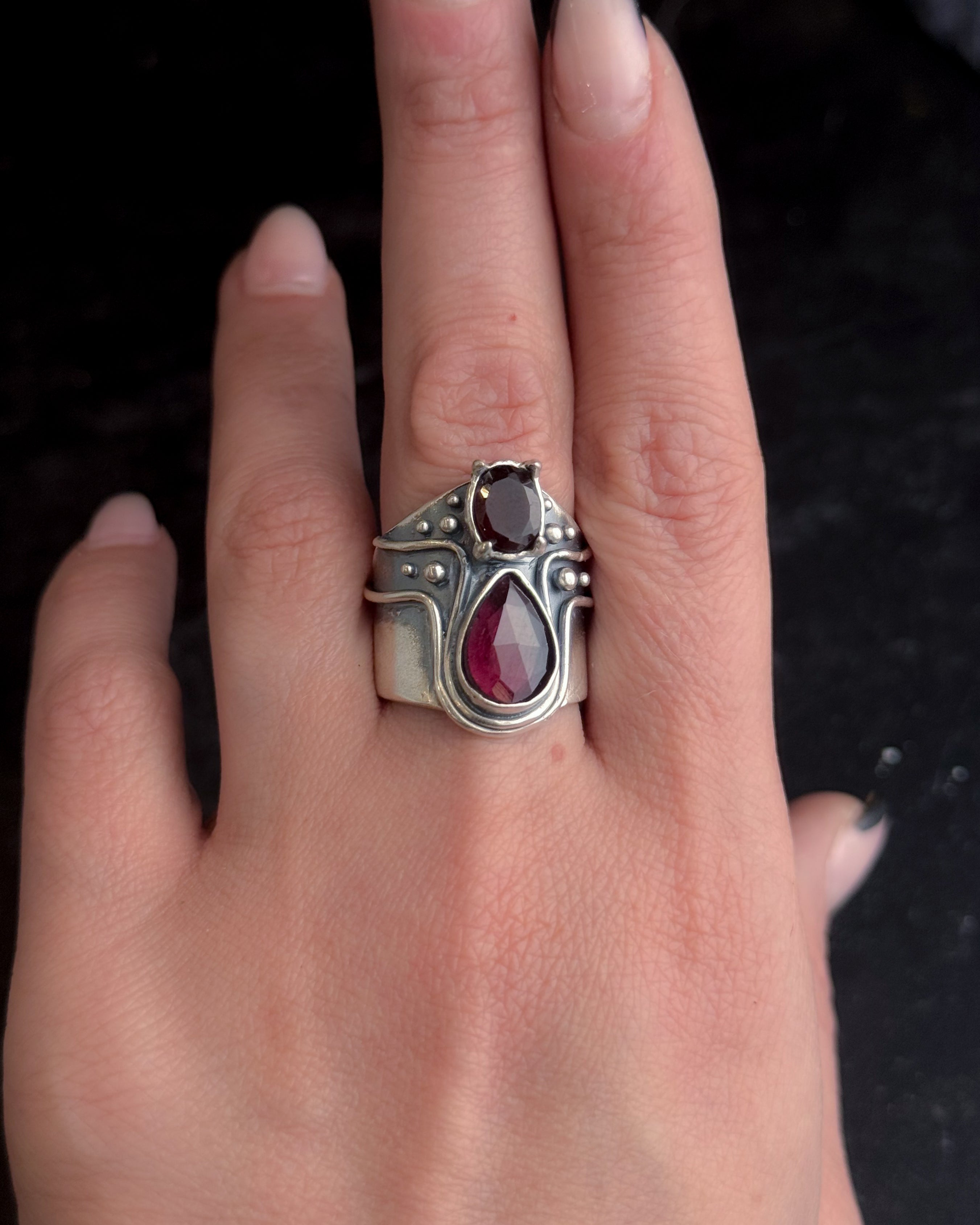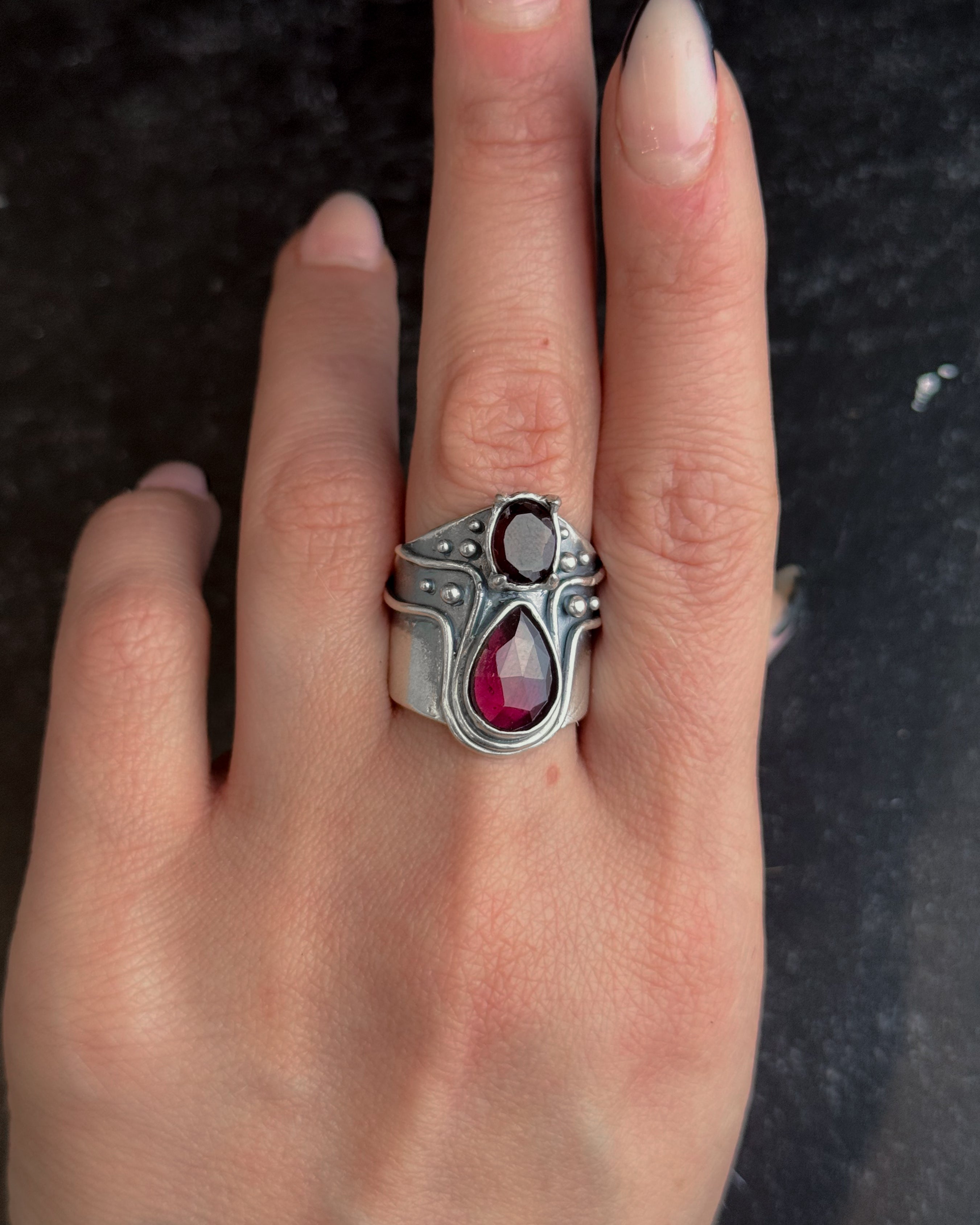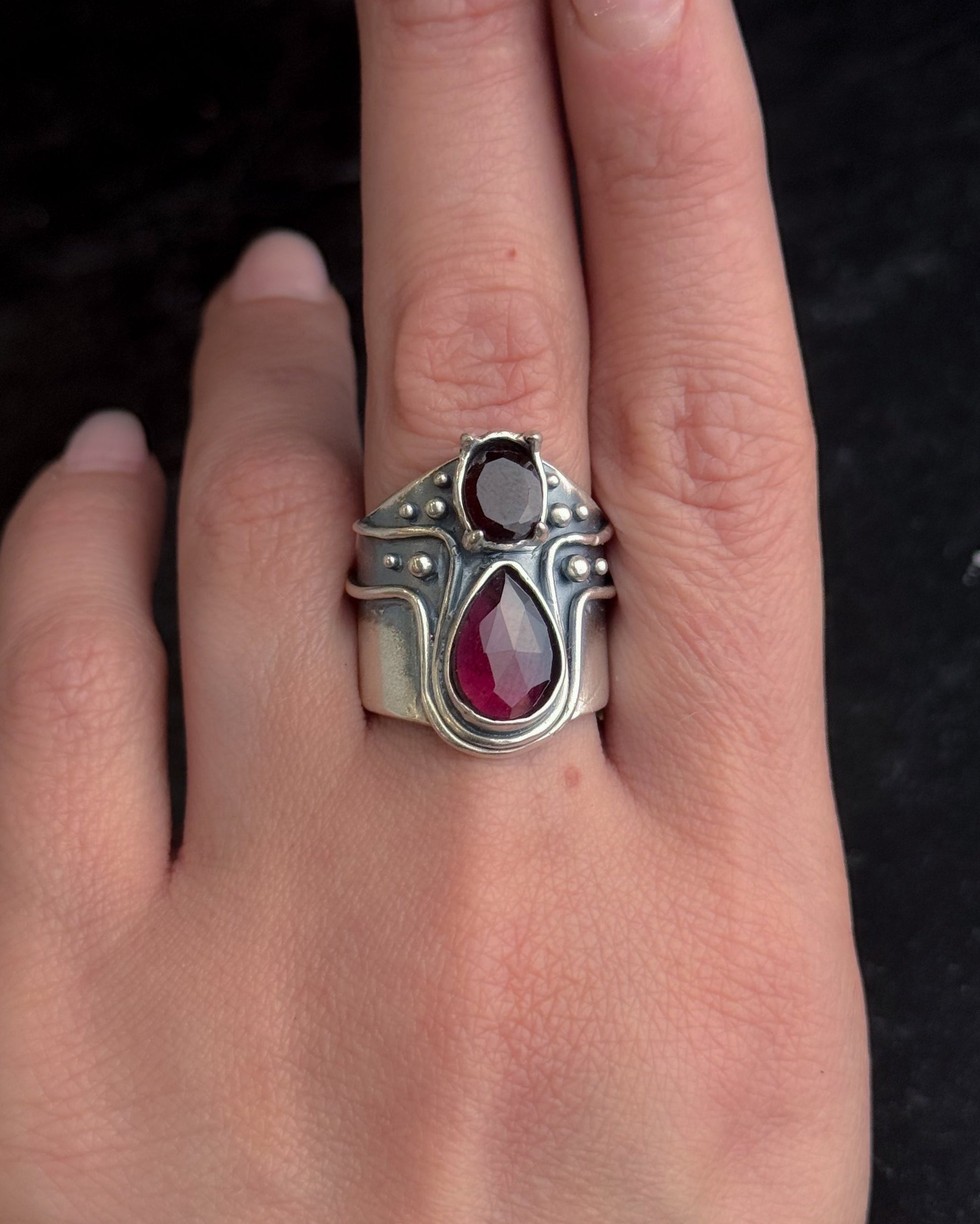Heart Opener Ring- Double Garnet - Custom sizing available