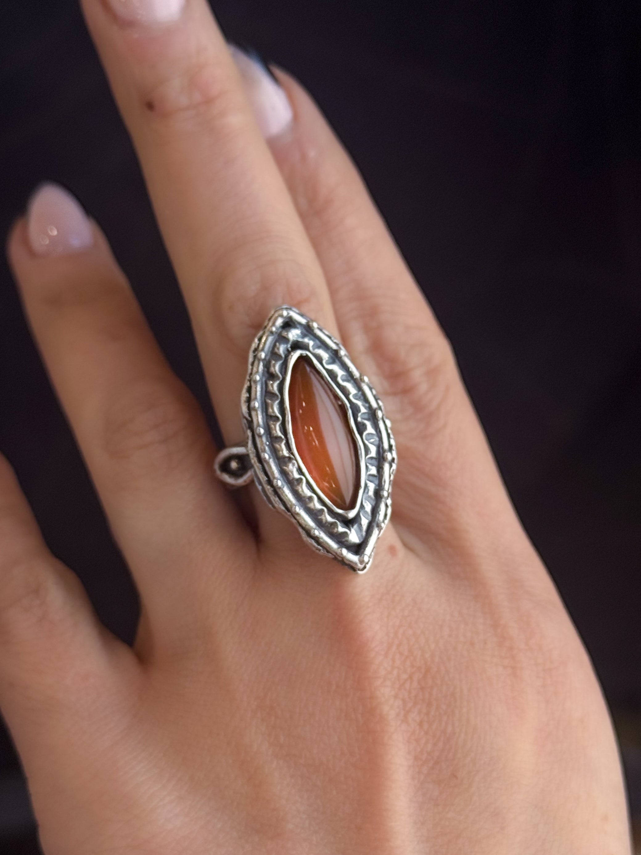 Labyrinth Ring | Carnelian + Sterling Silver- Custom sizing available