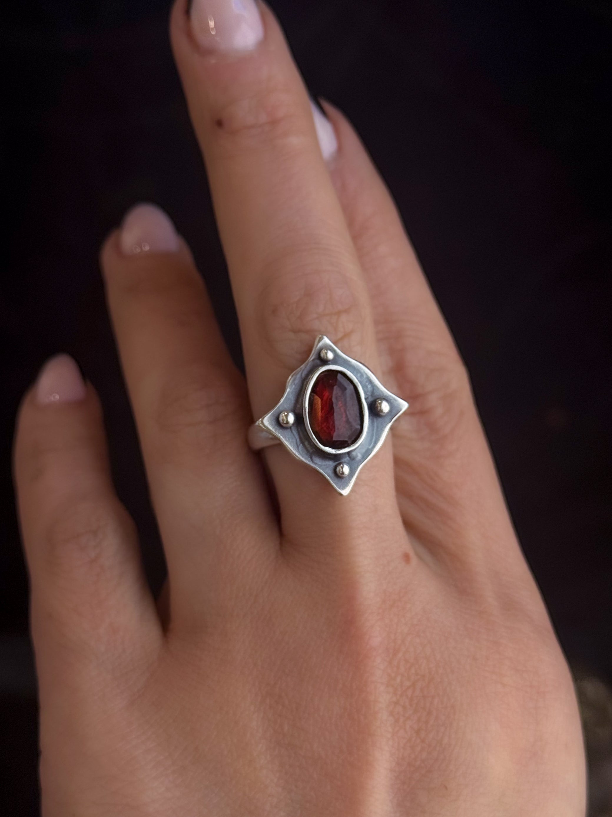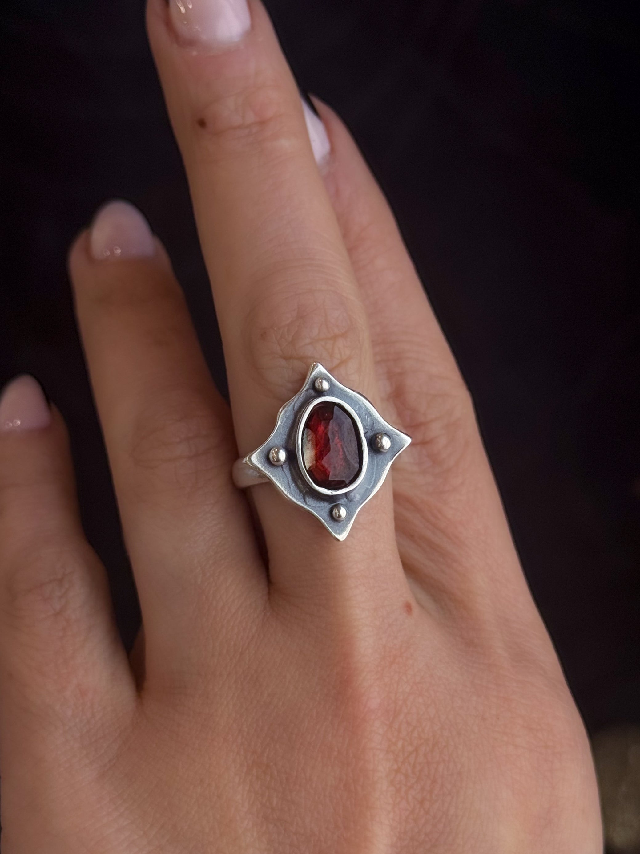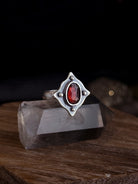 Persephone's Shield Ring | Garnet + Sterling Silver (Custom sizing available)