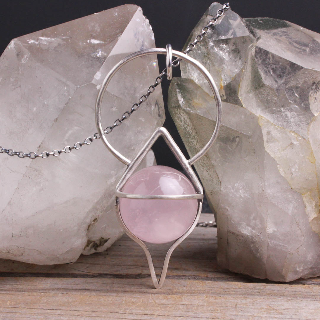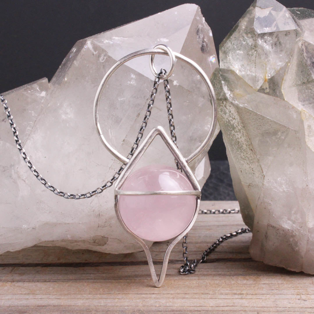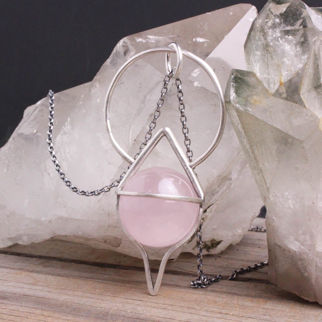 *Custom* Crystal Ball Pendulum Necklace // Rose Quartz