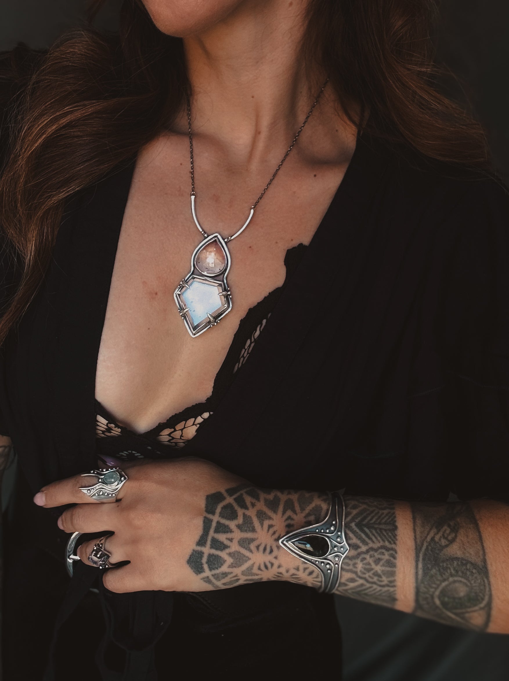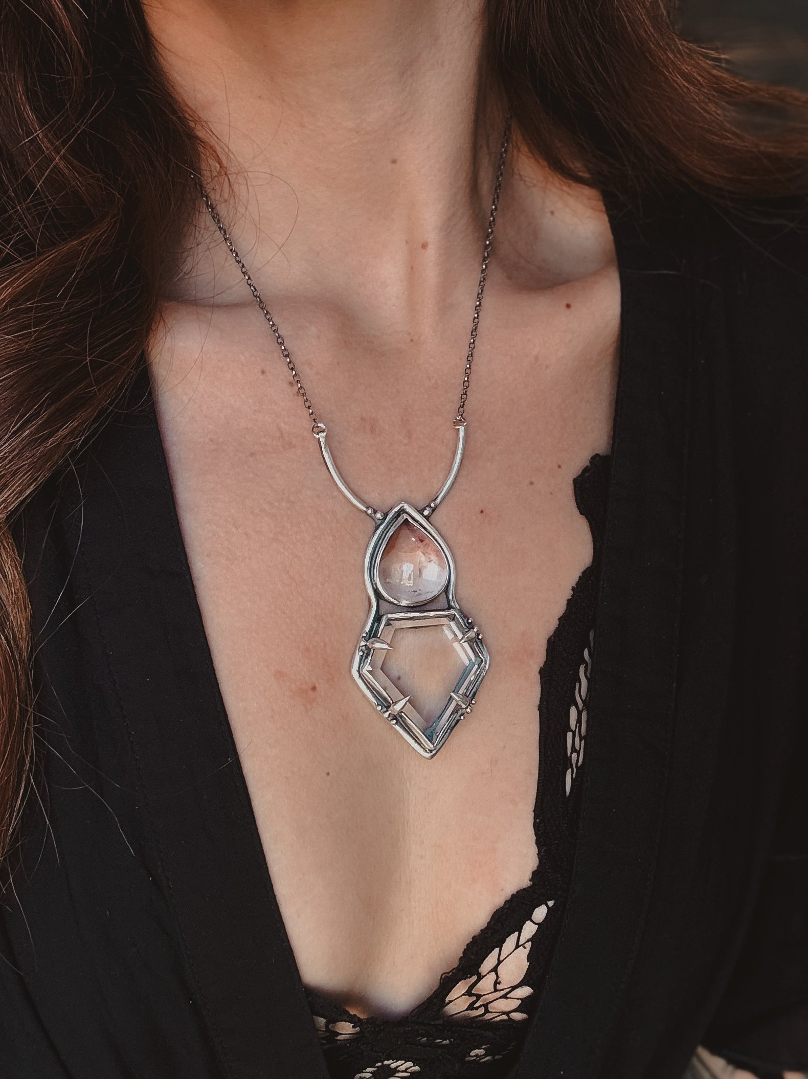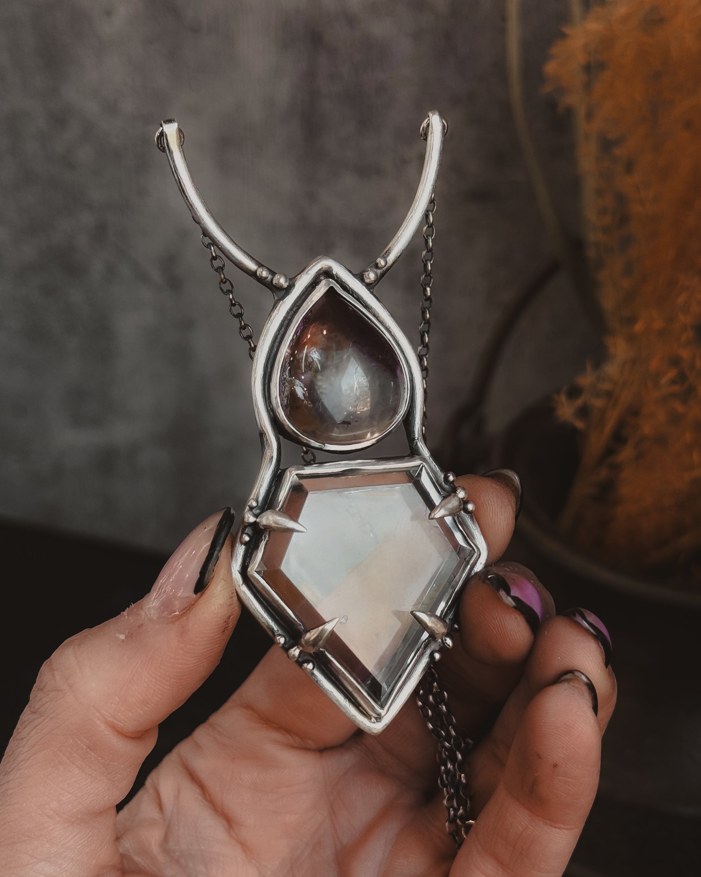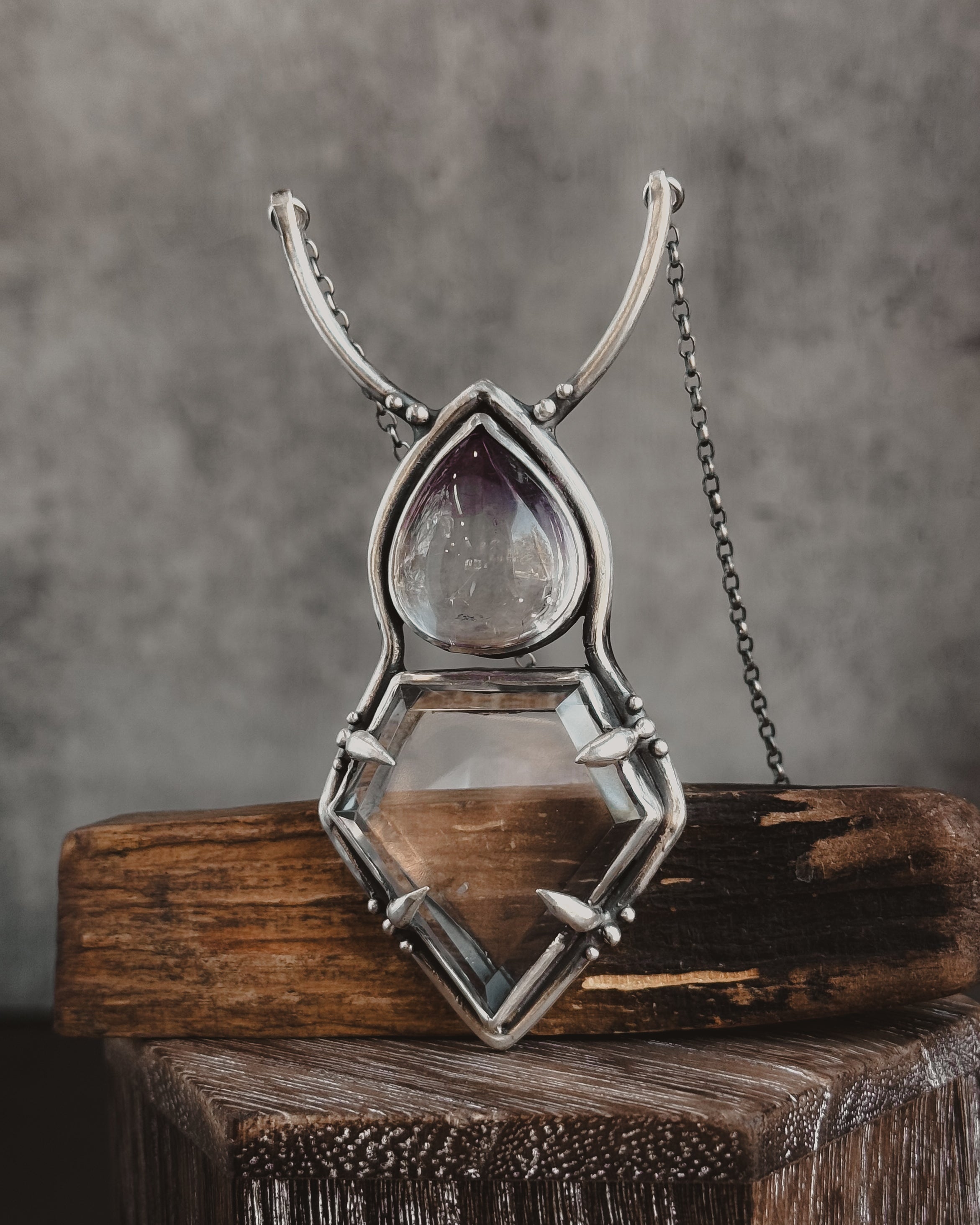 Empowered Shield Necklace- Brandberg Amethyst & Quartz