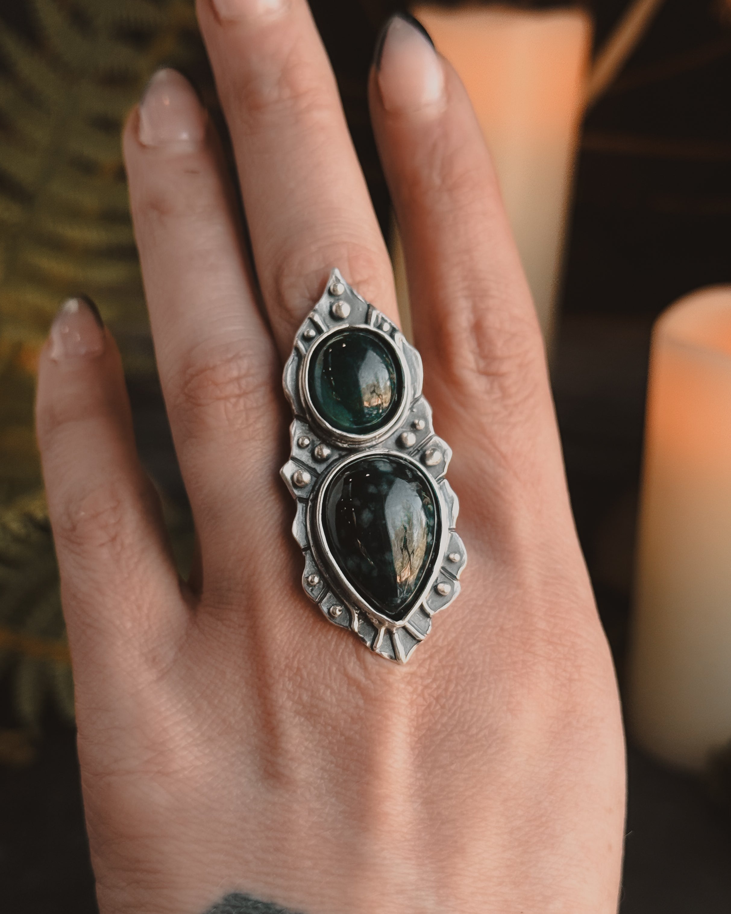 Each piece is hand fabricated in our Idyllwild, CA studio. Using Acid Queen’s signature technique, we build each piece in wax, cast in small batches, and hand finish to bring you wearable art that is bold, powerful and beautiful.