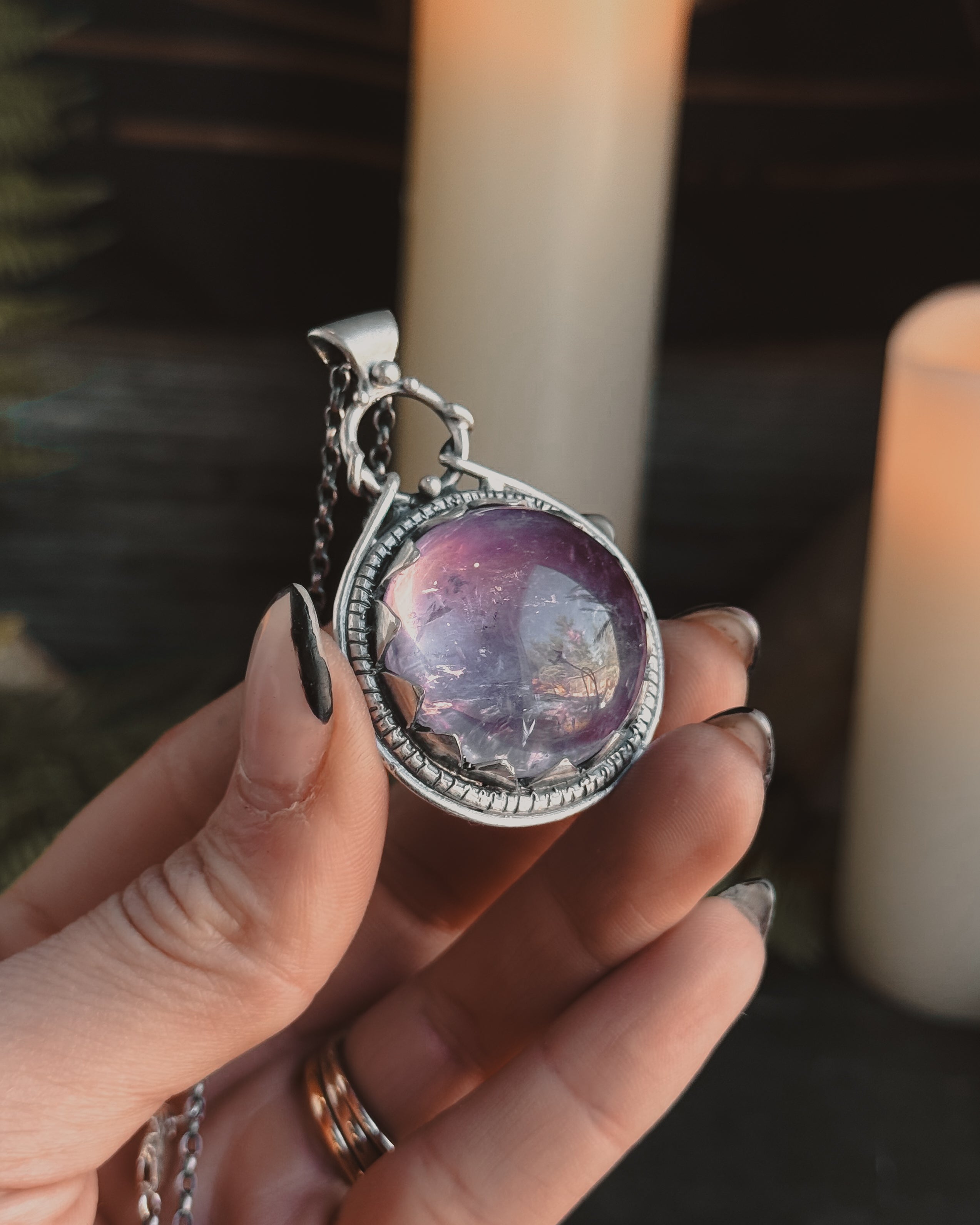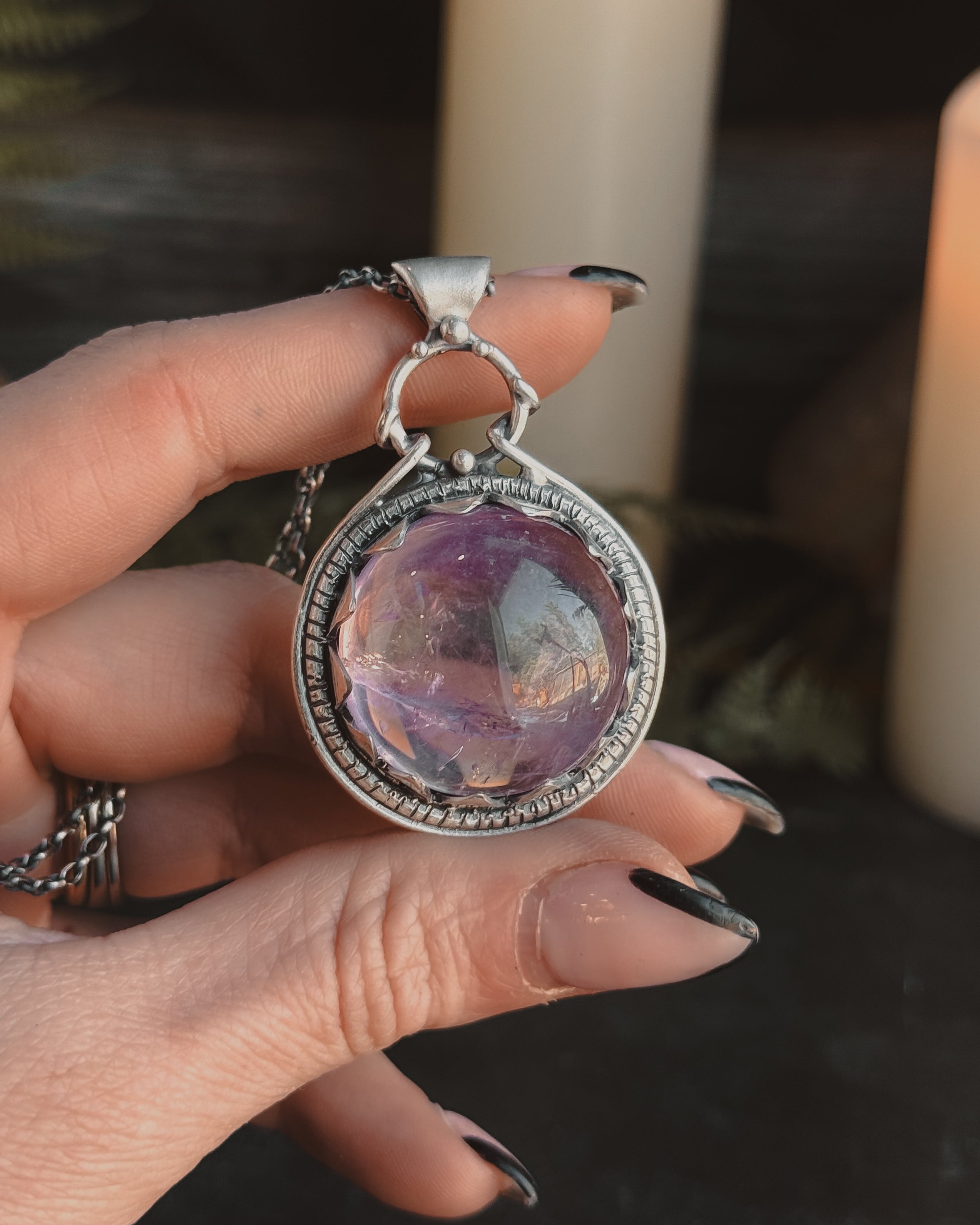 This piece is solid sterling silver including the chain and findings. Love Spell Necklace featuring a Amethyst.