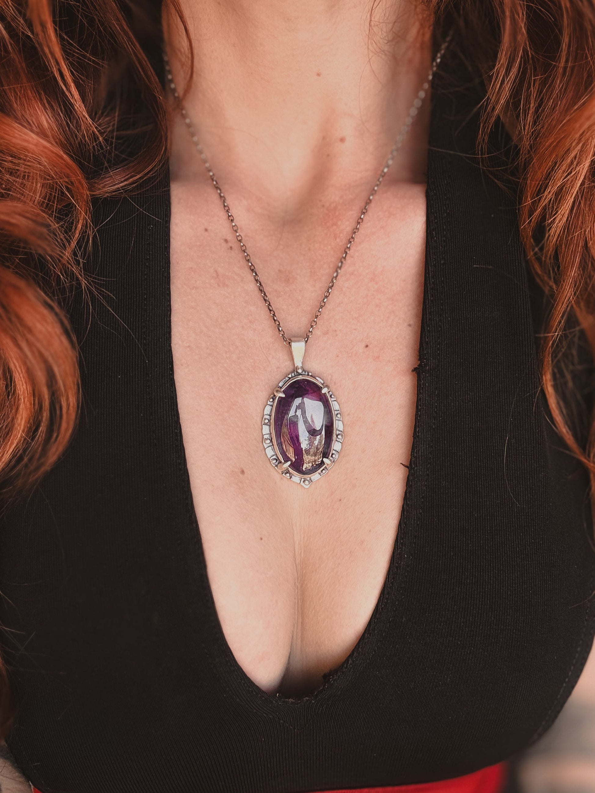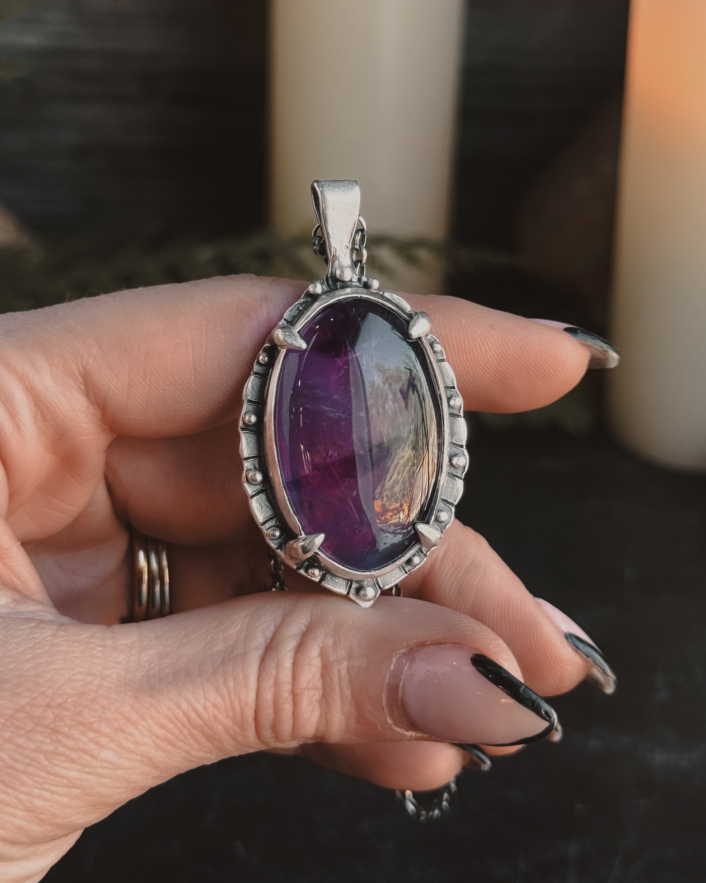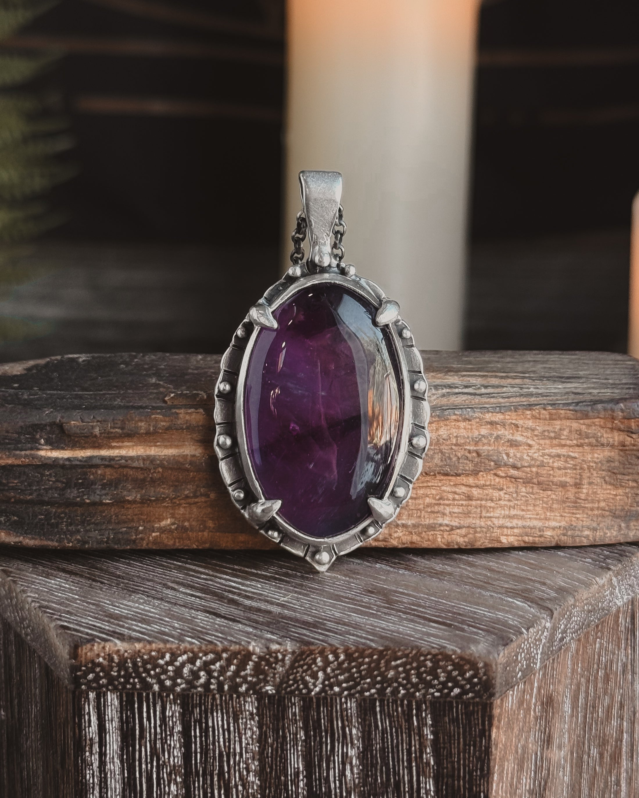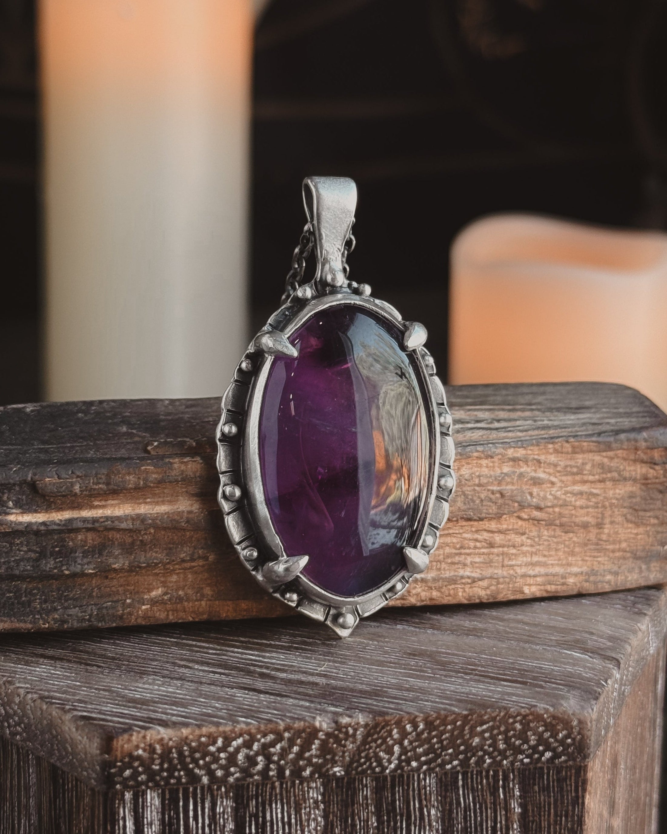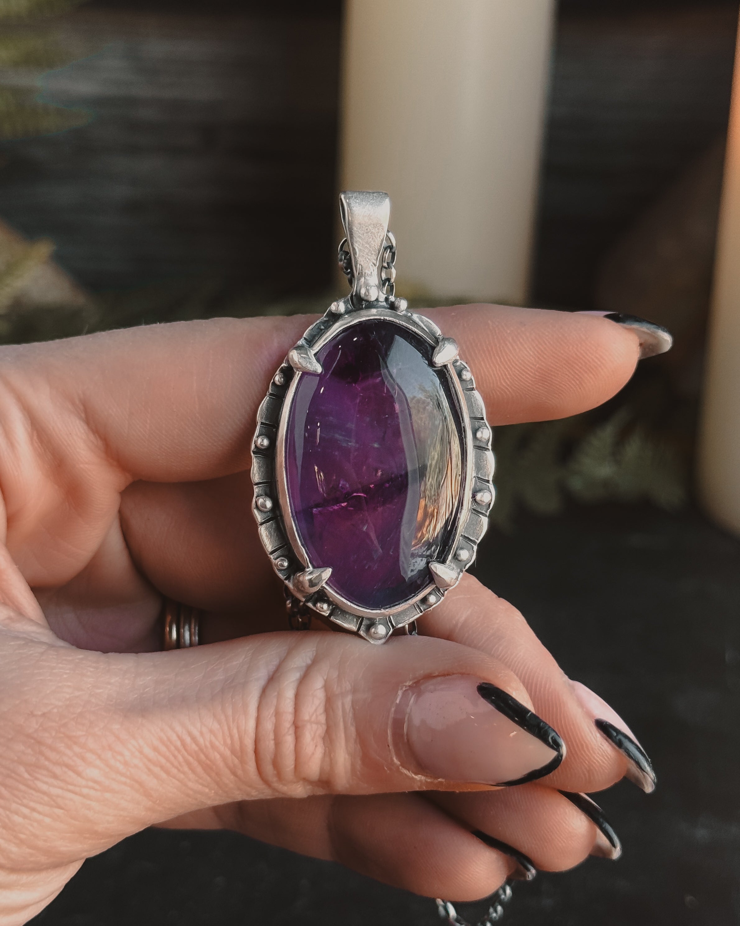 This piece is solid sterling silver including the chain and findings. Lover's Amulet Necklace featuring a Amethyst.